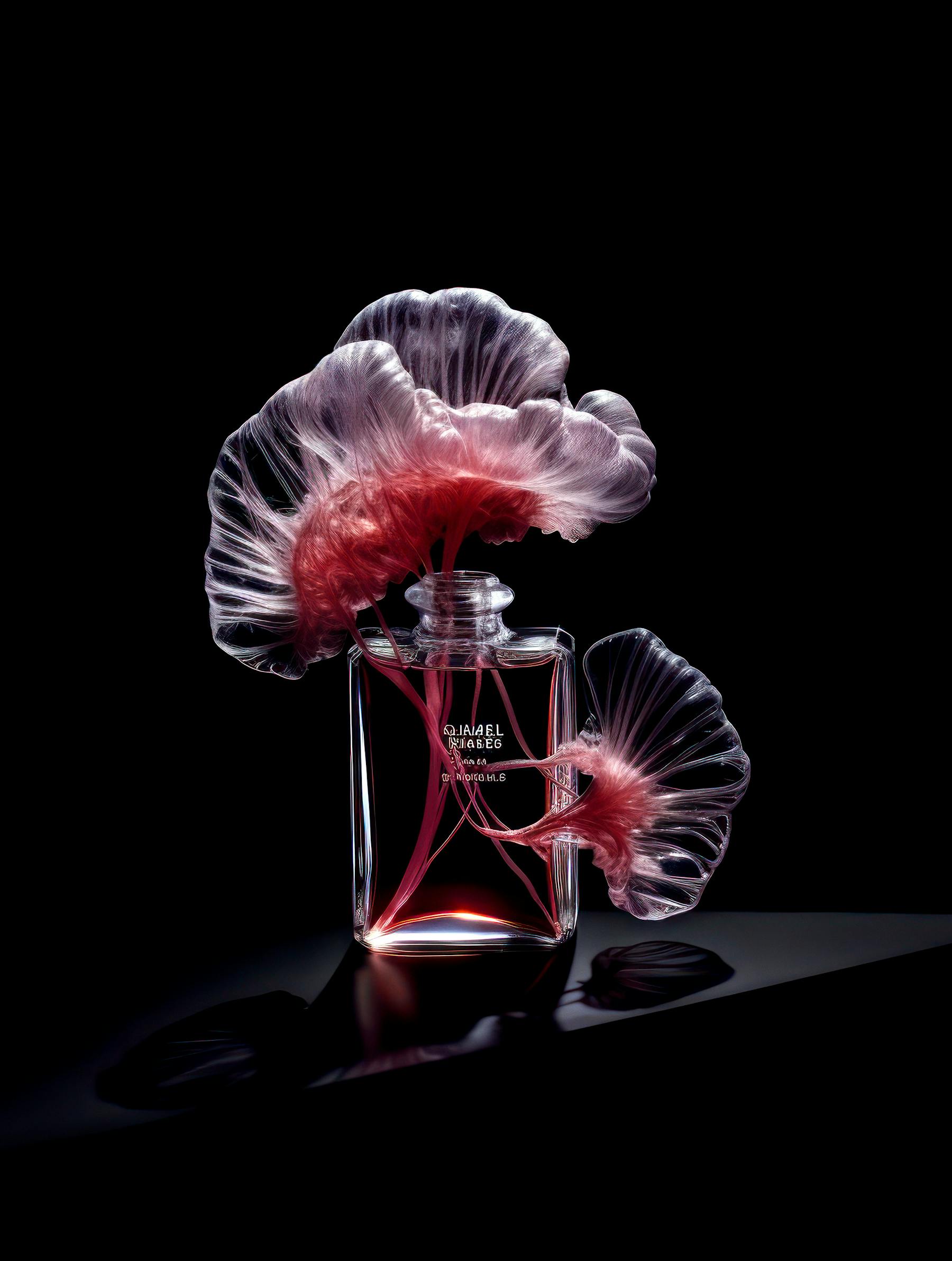 Always in search of exploration and new iconography, Exhibition asked photographer Guido Mocafico to dialogue with artificial intelligence to reinvent Chanel's emblematic N°5 fragrance. An infinite source of inspiration for the greatest artists, the iconicity of the bottle takes on a new twist, at the intersection of art, beauty and technology.