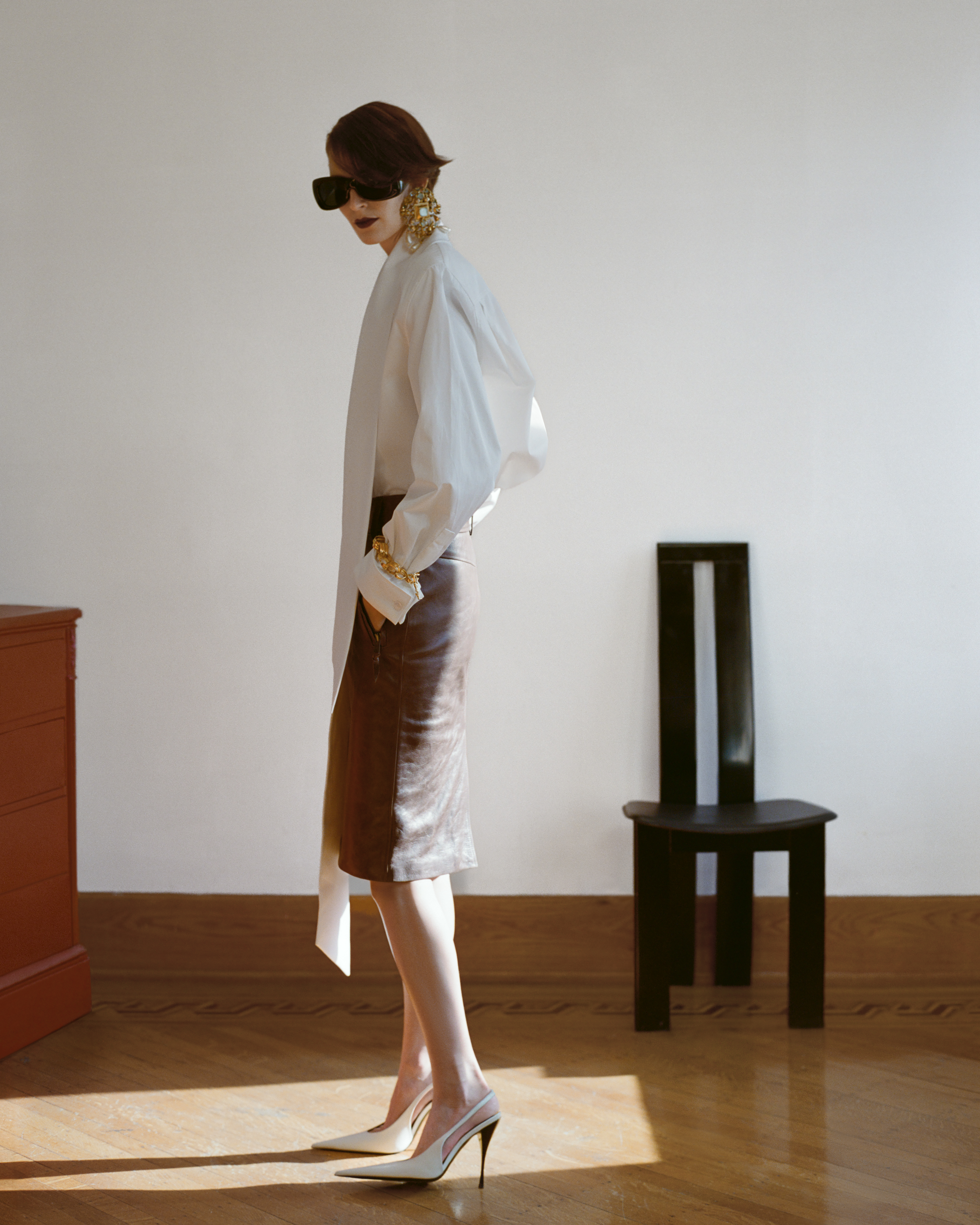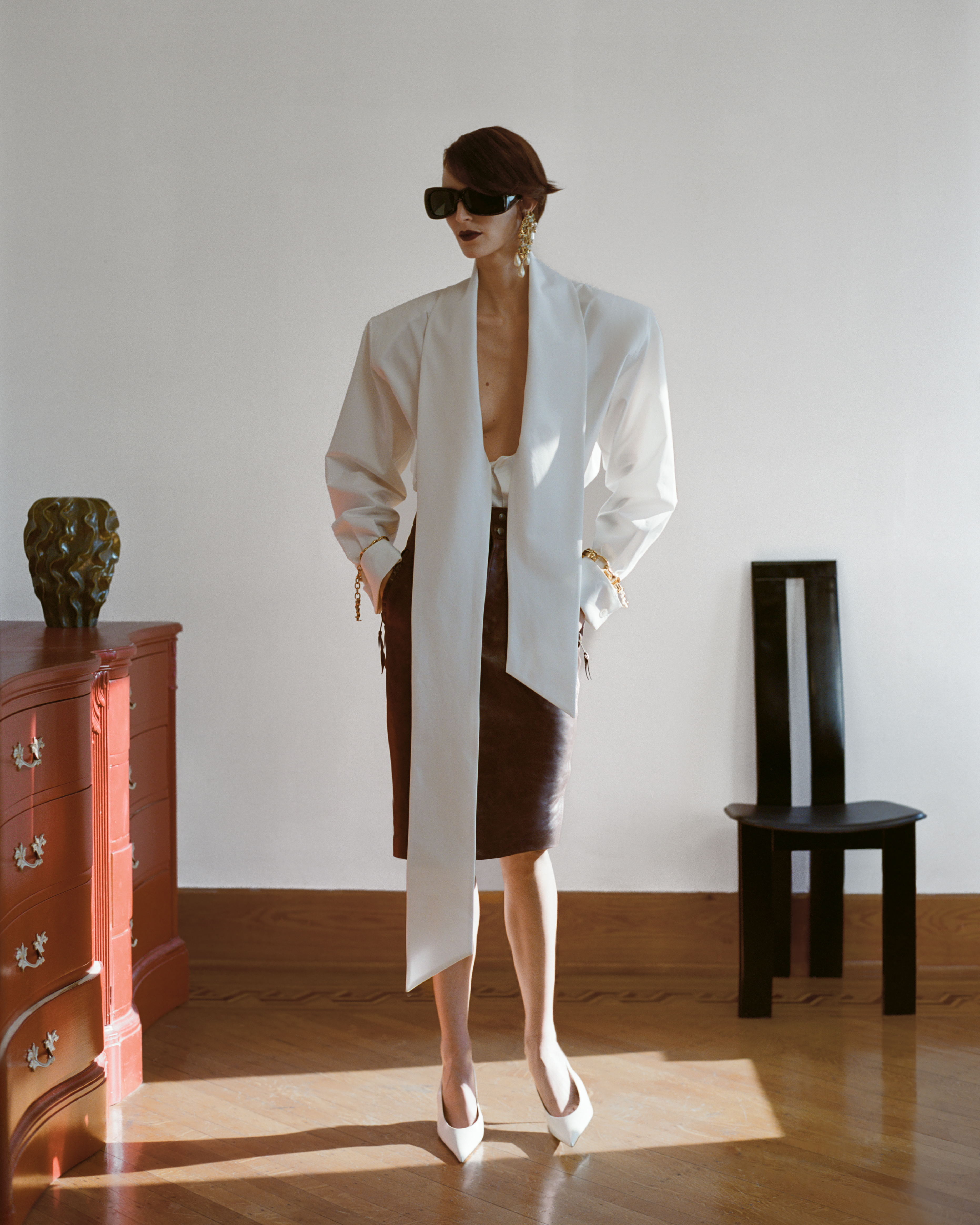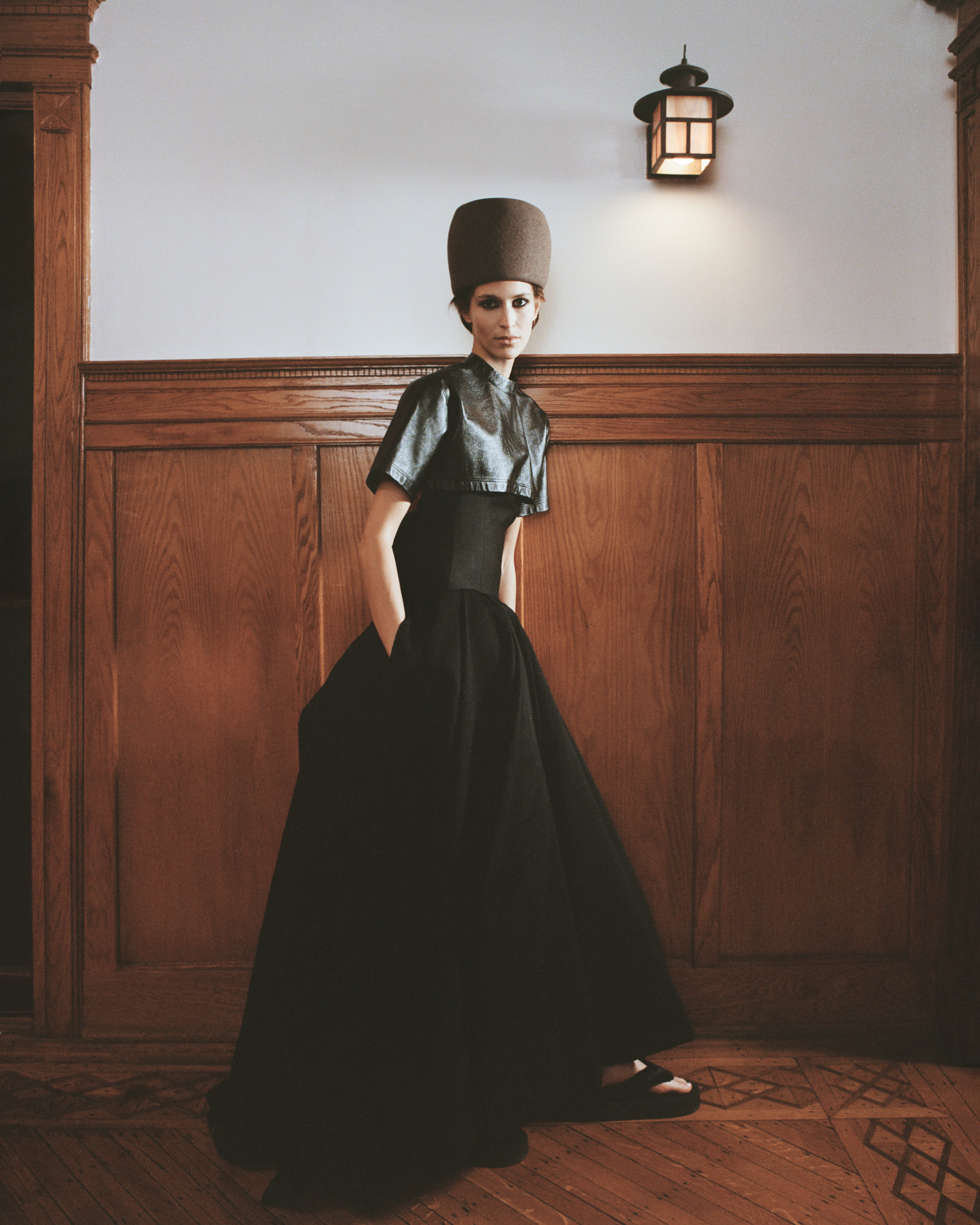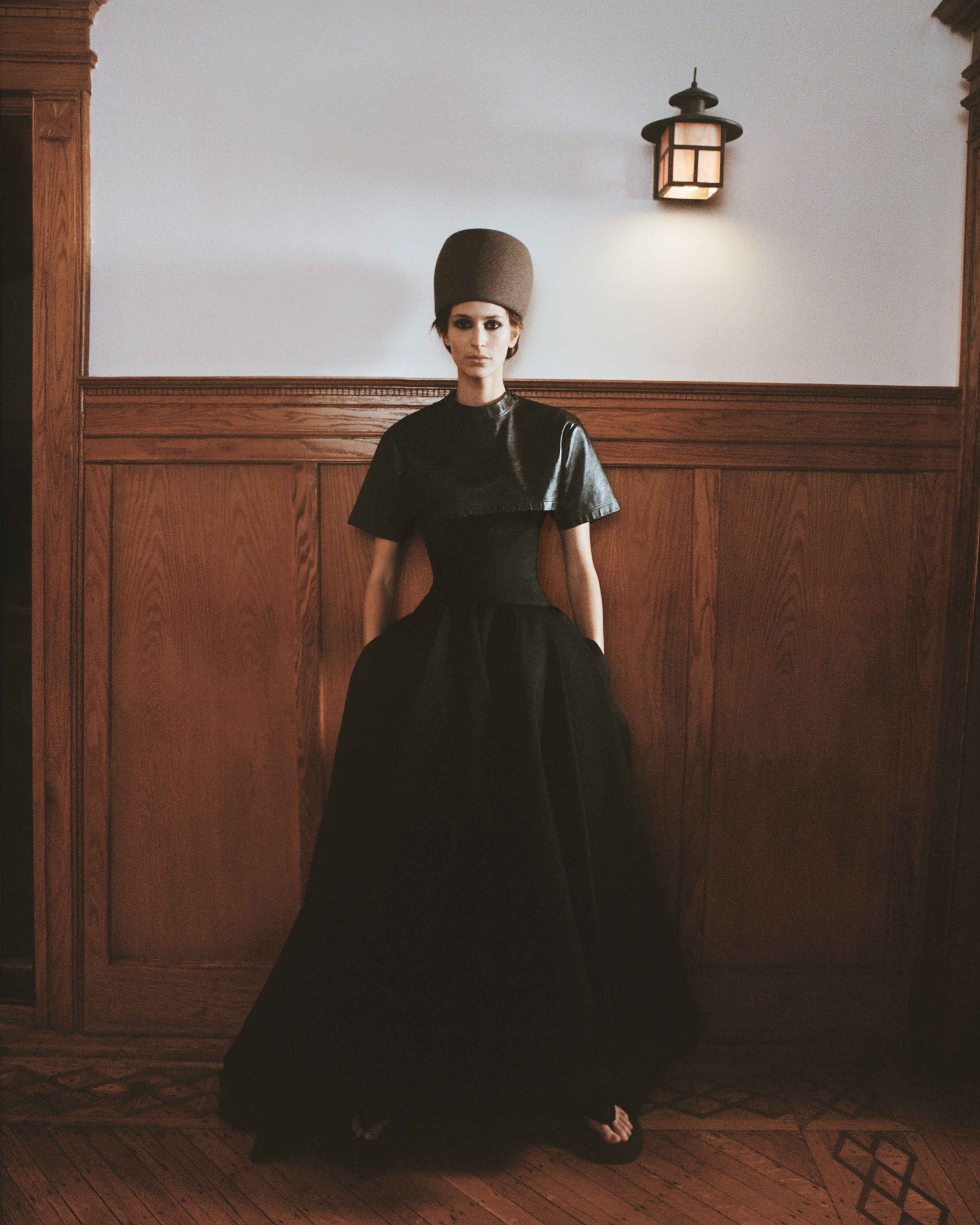 BALENCIAGA top, dress and shoes, LORO PIANA hat.