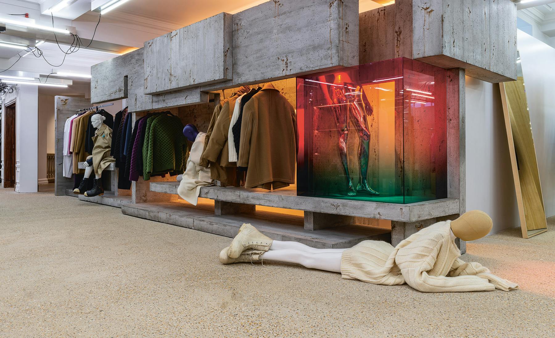 C.B. Raf Simons’ space at Dover Street Market in London, which mixed the rawness of concrete with colorful displays. It was clever in its conception, timeless, and generous in its space, which in my view, perfectly describes Glenn’s aesthetic.