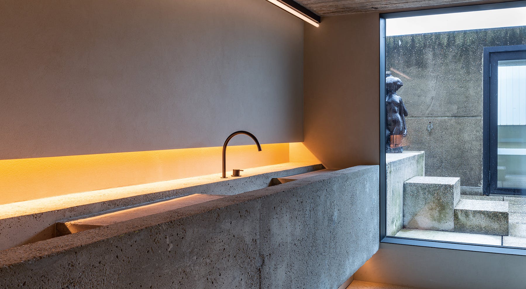 Like her family, Belgian Isolde Pringiers, daughter of industrialist Pierre Pringiers and artist Saskia Pintelon, shares with Glenn Sestig a contemporary minimalist style and a passion for concrete.