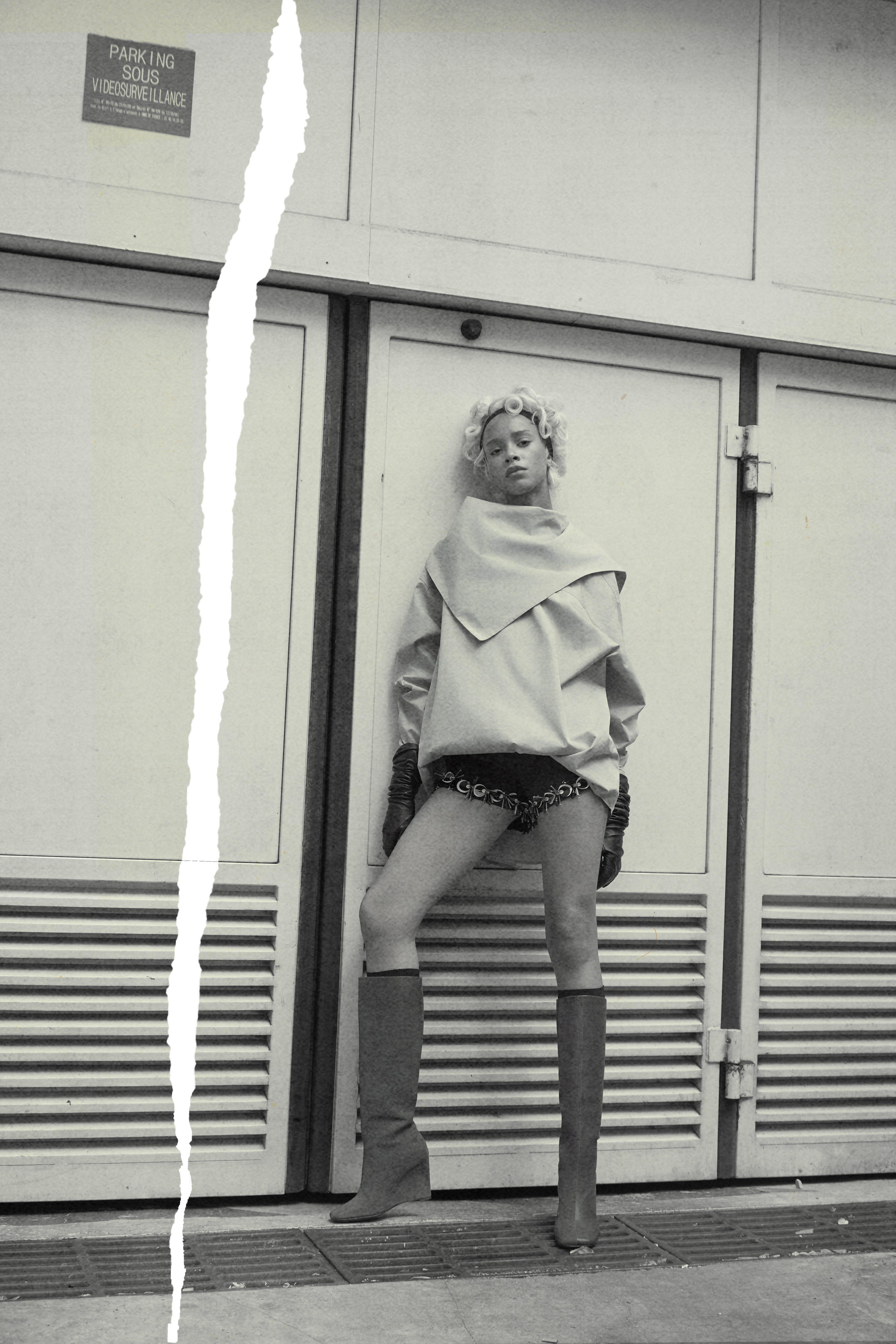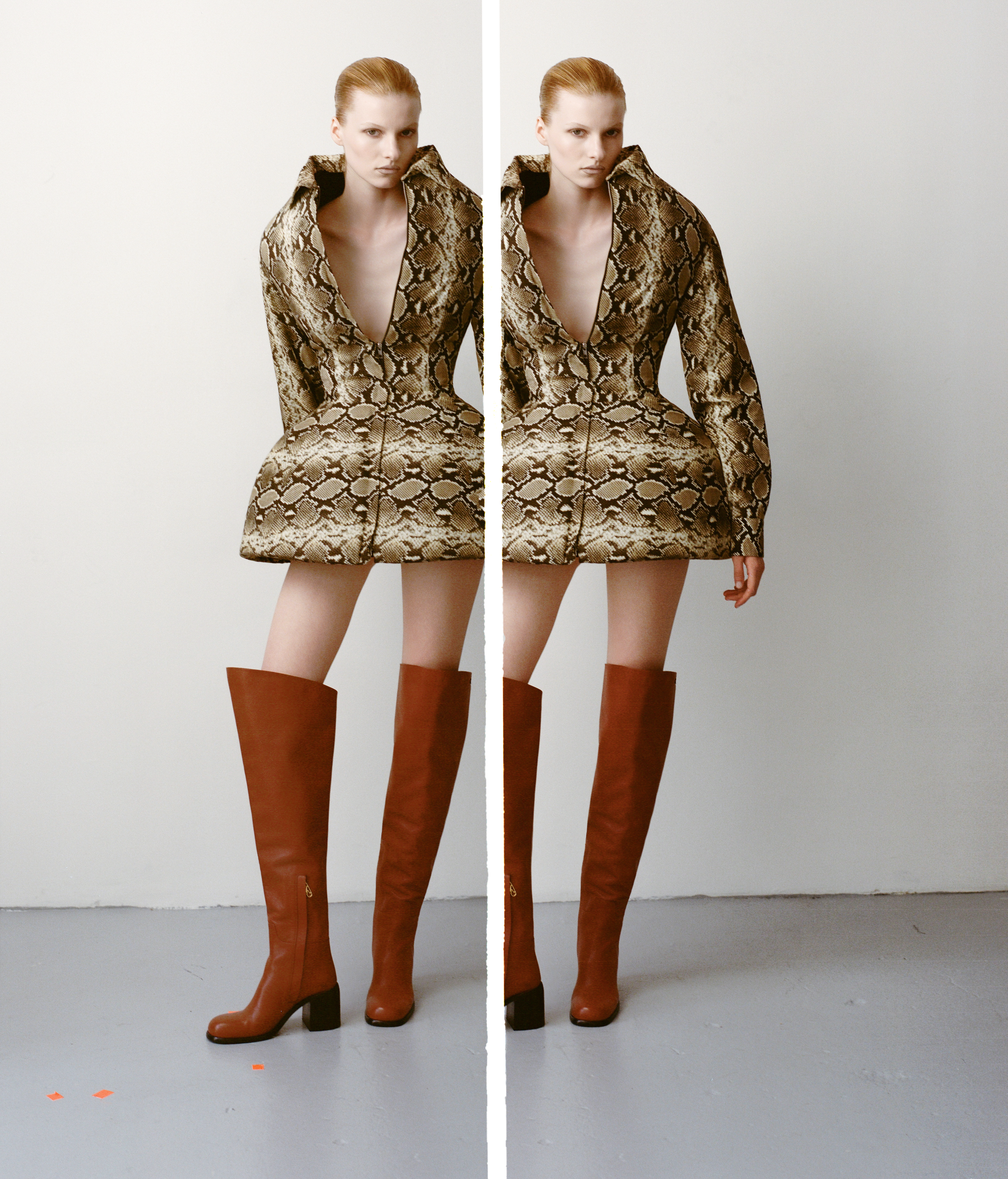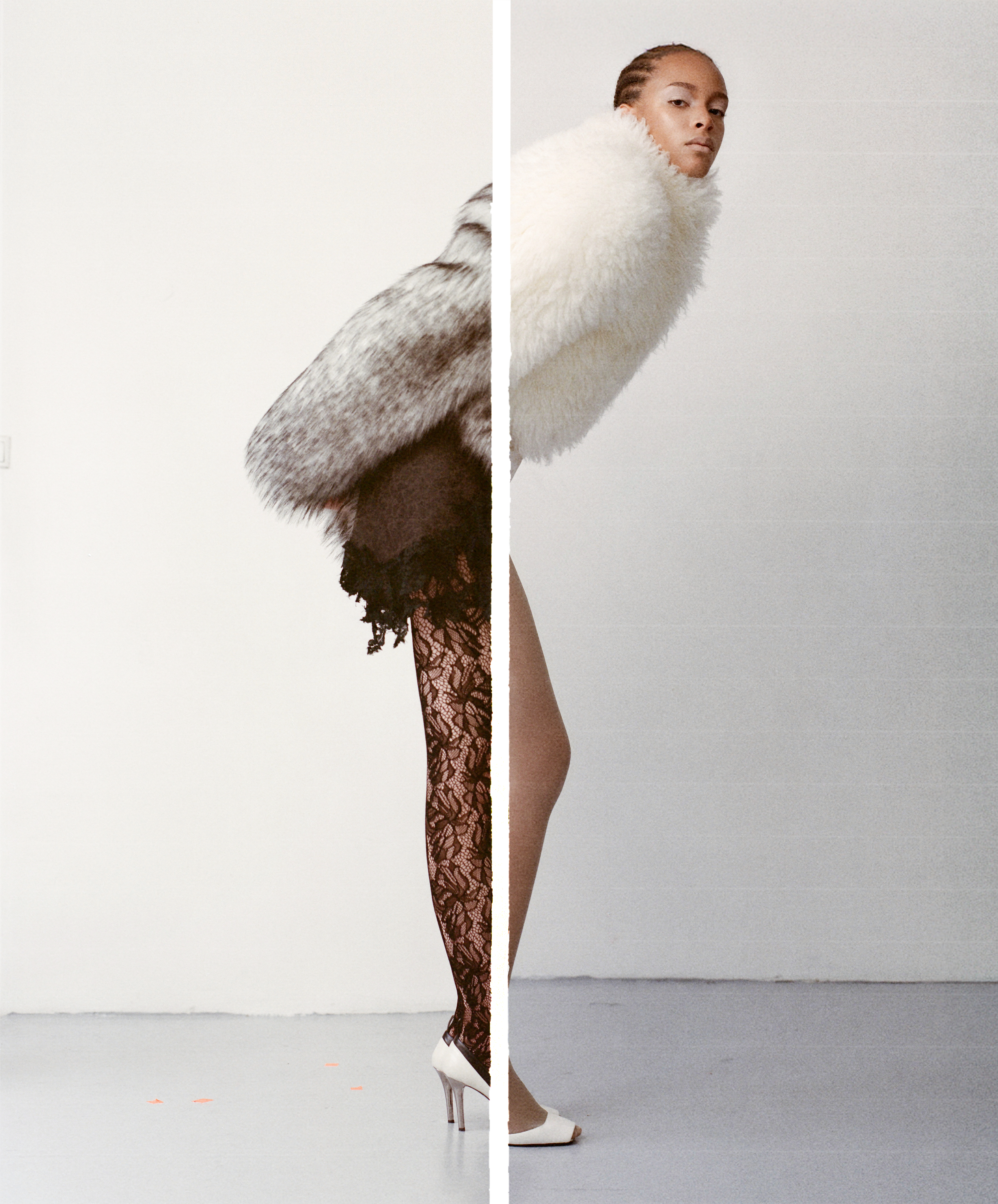 Right half : Coat ALAÏA, short PUCCI, shoes COURRÈGES