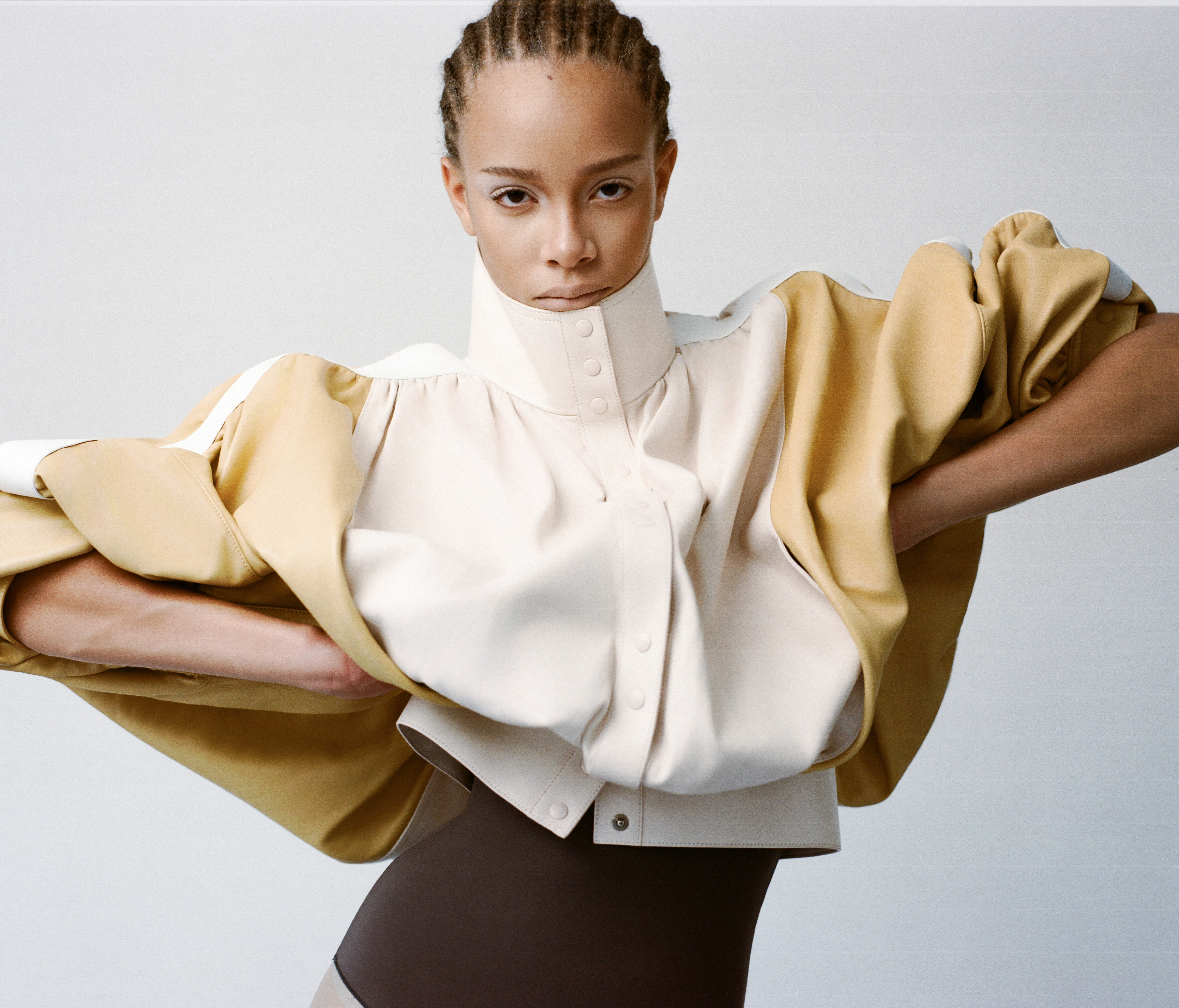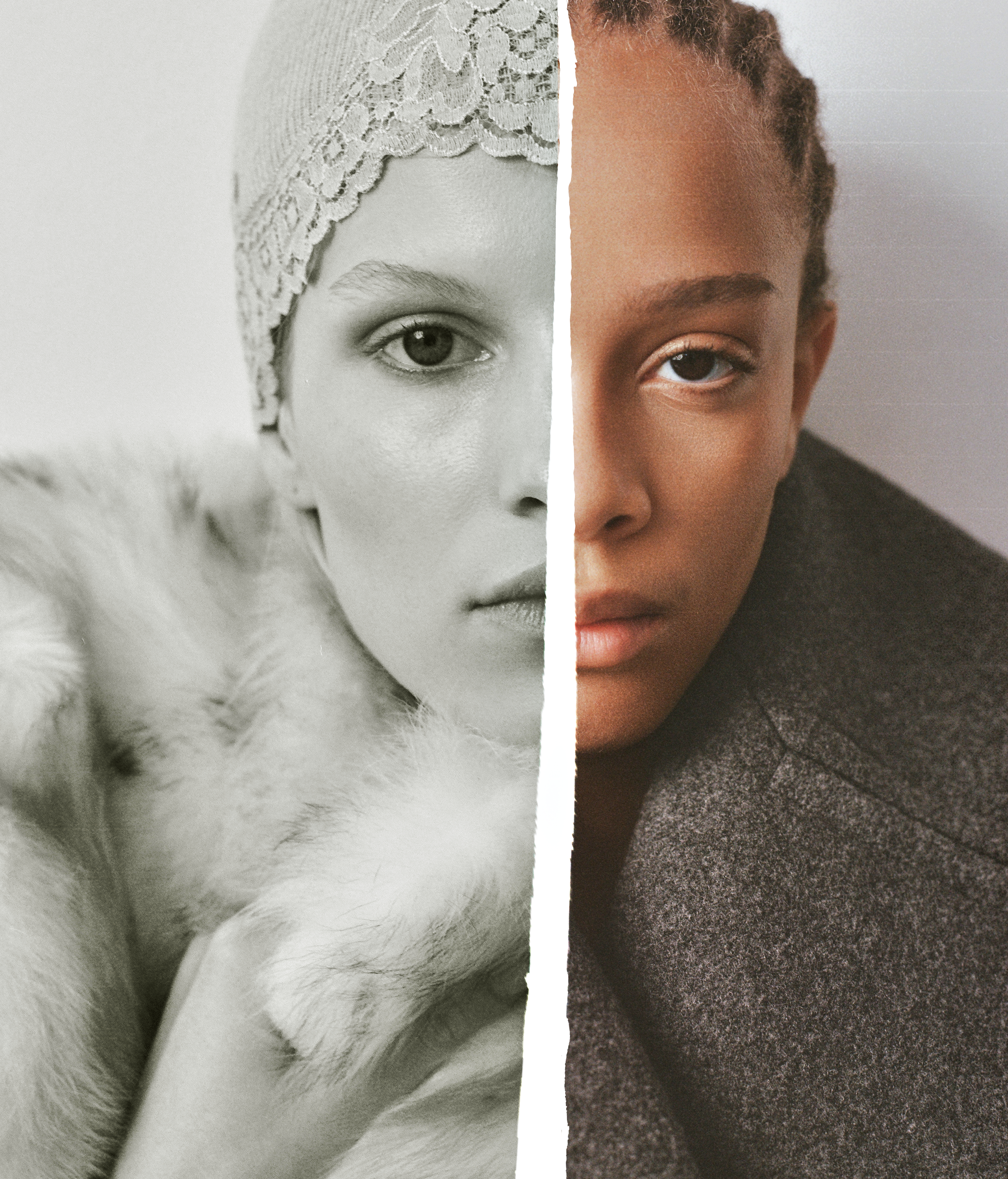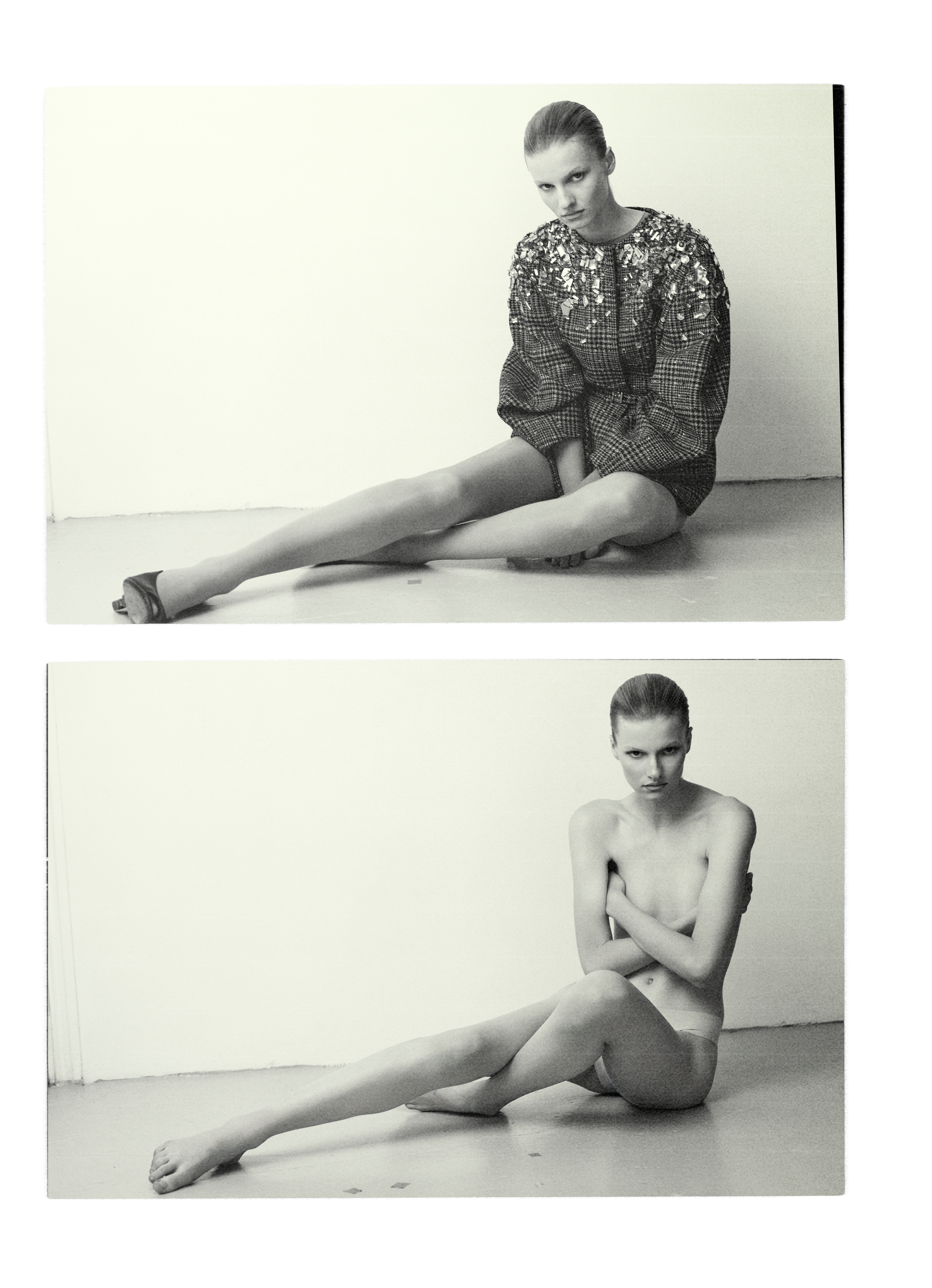 Right half : Coat ALAÏA, short PUCCI, shoes COURRÈGES