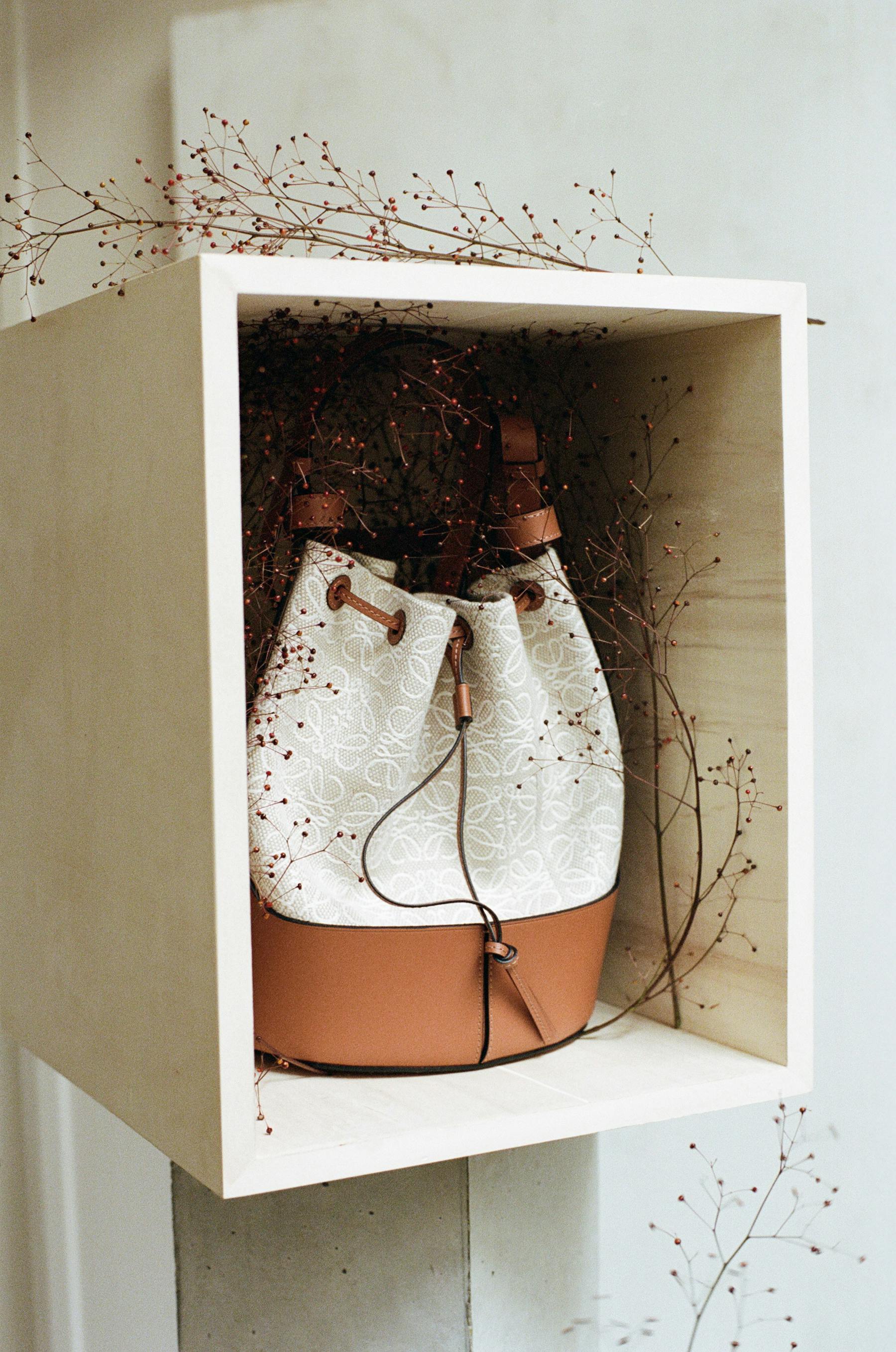The density of the thin branches brings depth, as if the box were infinite (IRL 70cm x 60cm x 88 cm). The Anagram balloon bag is beautifully sitting at the center of a whirlwind of orange details. A poetic invitation to dive in.