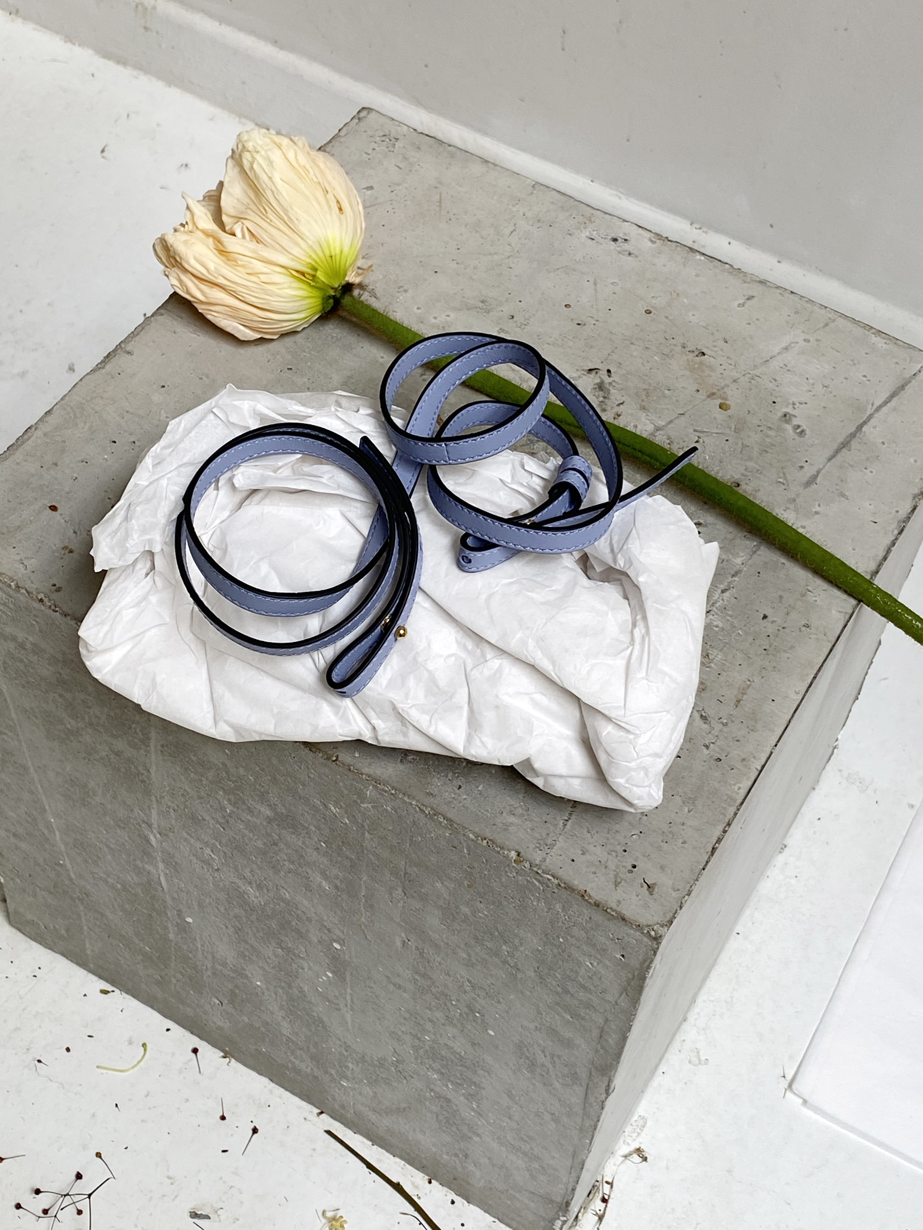 The FLWR box hosts a floral yet ephemeral sculpture telling a story without artifice. Combining exquisite forms and noble materials, the whole picture looks alive: while the Griffe du diable seems to catch the leather from the bottom, the colorful mix of flowers blossoms from the top. In‑between, the blue bag brings light, like a serene blue sky. A composition evoking heaven and hell that stimulates our imagination. A harmony of contrasts.