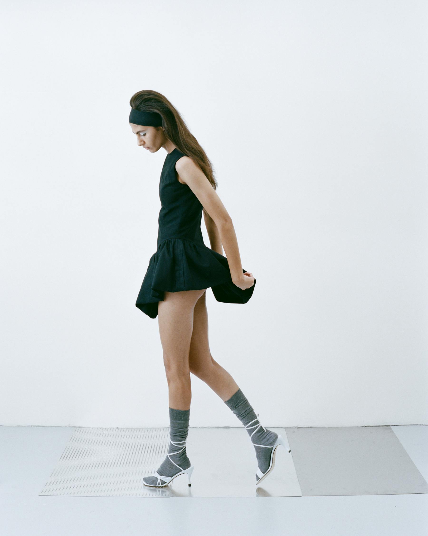 One moment I’ll never forget was my first show in August 2023. It featured just one model — Britt Liberg — staged alongside twenty old mannequins. She performed by trying on all the looks, almost like a quiet ritual of getting dressed. The room was completely silent, and the music was played live on piano by her father, Hans Liberg. You could feel the focus, the tension — it was deeply intimate. That was the first time I truly experienced the emotional power of fashion in my own work — not just as garments, but as a kind of language. It became a shared moment of vulnerability between the audience, Britt, and the quiet intimacy of getting dressed and undressed. It felt very personal, and I think that’s what made it unforgettable.