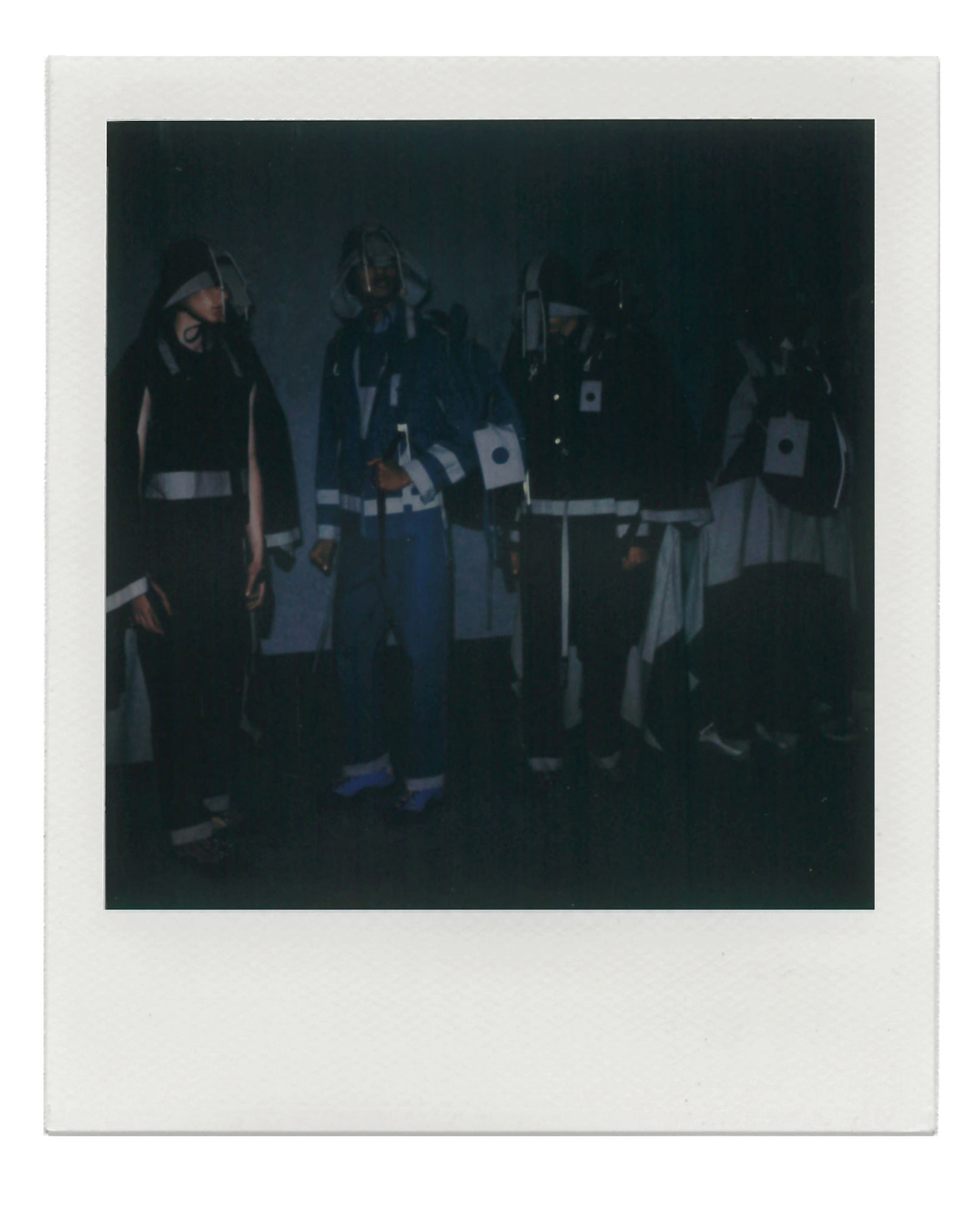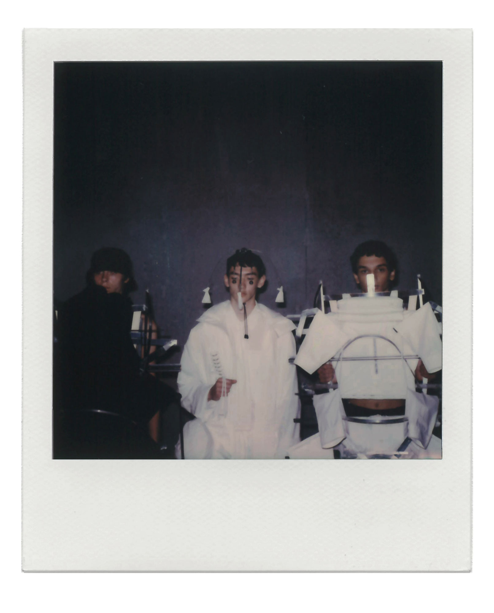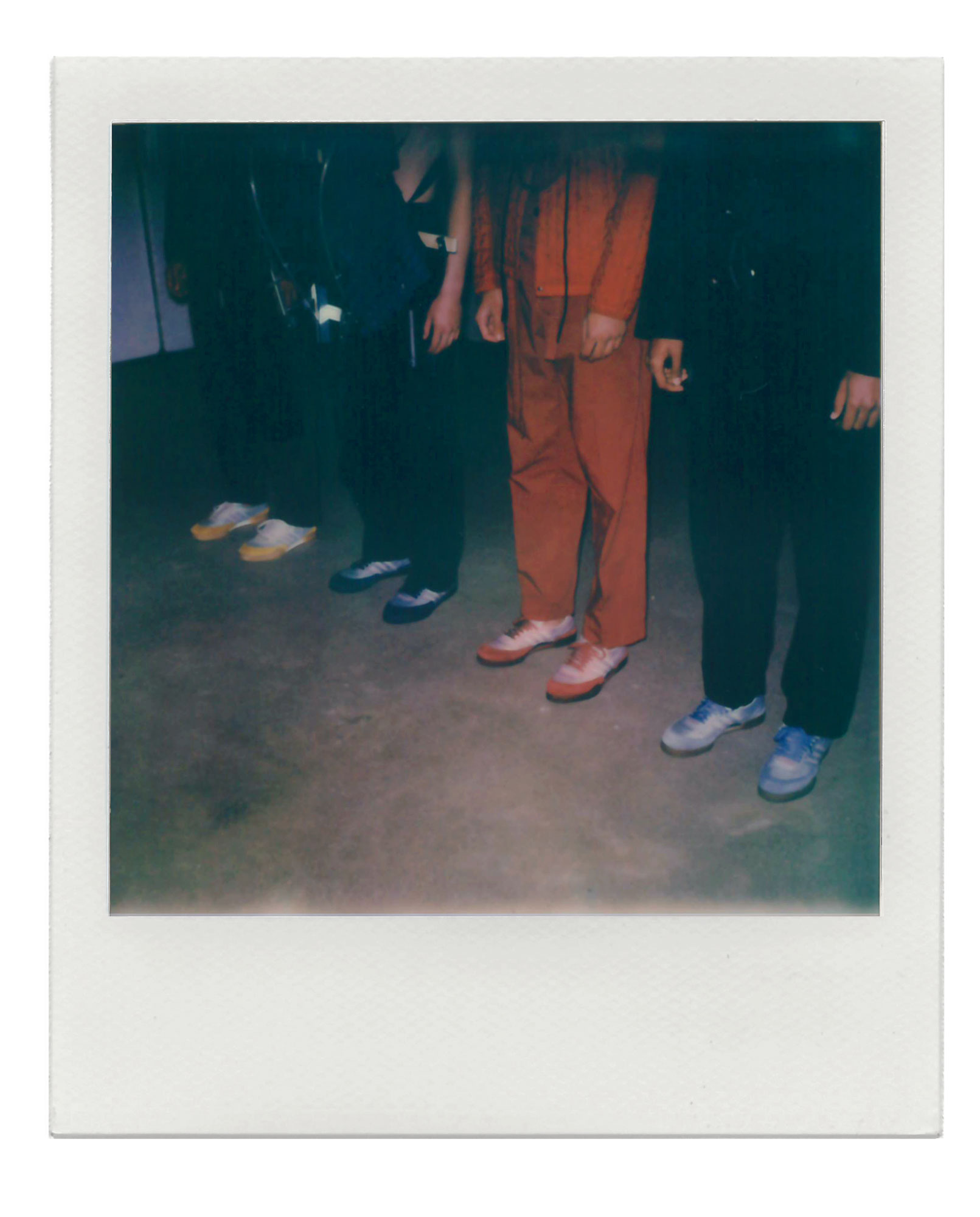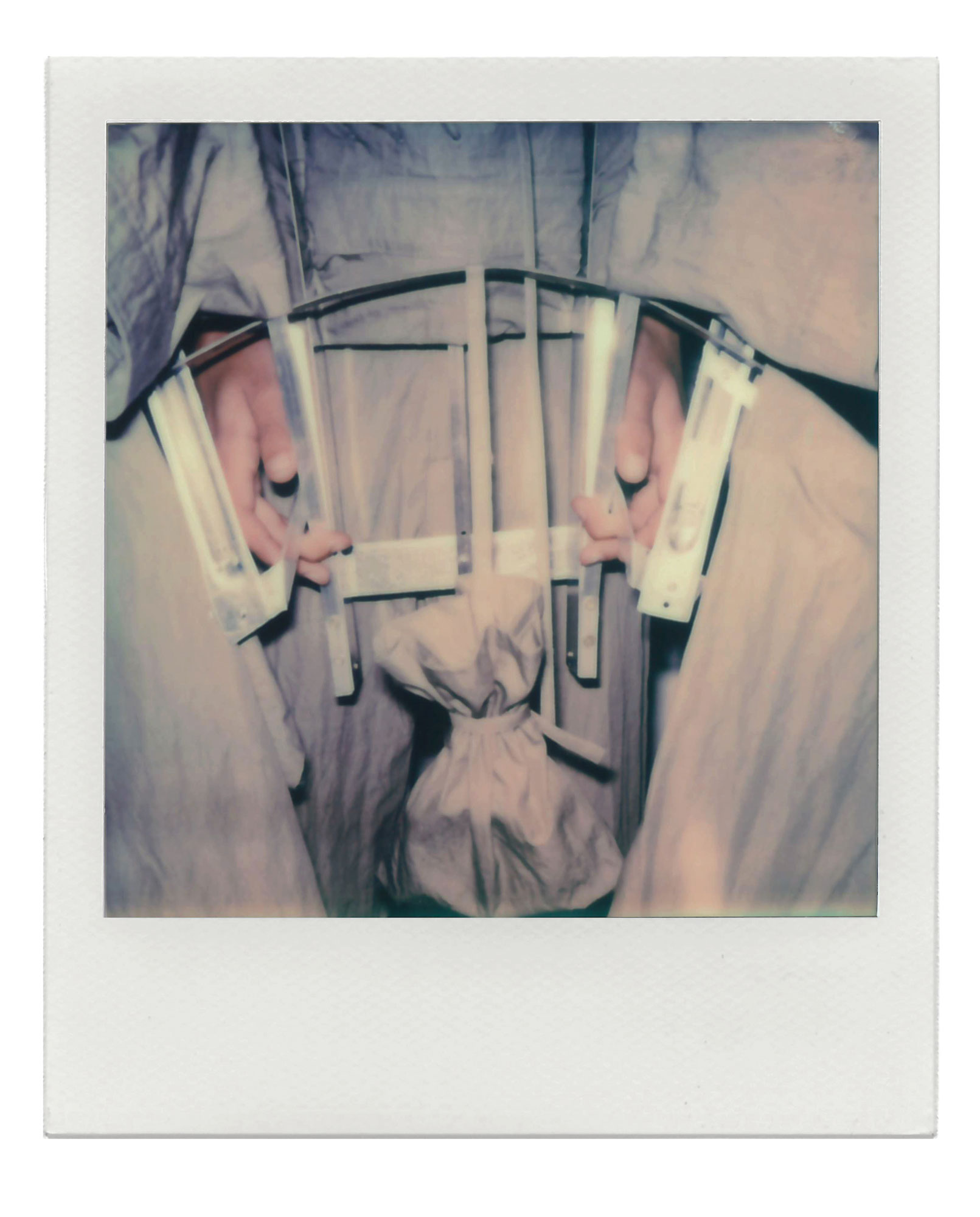 ⏤ Since 2017, his highly experimental designs for Moncler (in the context of the Genius project of the down jacket brand) - incredible pillowy sculptures conceived as habitats in and of themselves - have caused a sensation, consolidating his reputation as an artist-designer. On the occasion of his Spring/Summer 2021 collection, a series of Polaroids was shot backstage, a selection of which has been entrusted exclusively to Exhibition Magazine. Designed during the 2020 lockdown, the architectural pieces question the boundary between (science-)fiction and reality, ideas of intimacy and comfort in the age of working from home (for the first time the models are wearing ties!) and underline, like a leitmotif, the importance of the collective. There is innocence here, too. The models are crowned with metallic hats which call to mind mobiles for babies. Because, for Craig Green, clothes are there first and foremost to protect us.