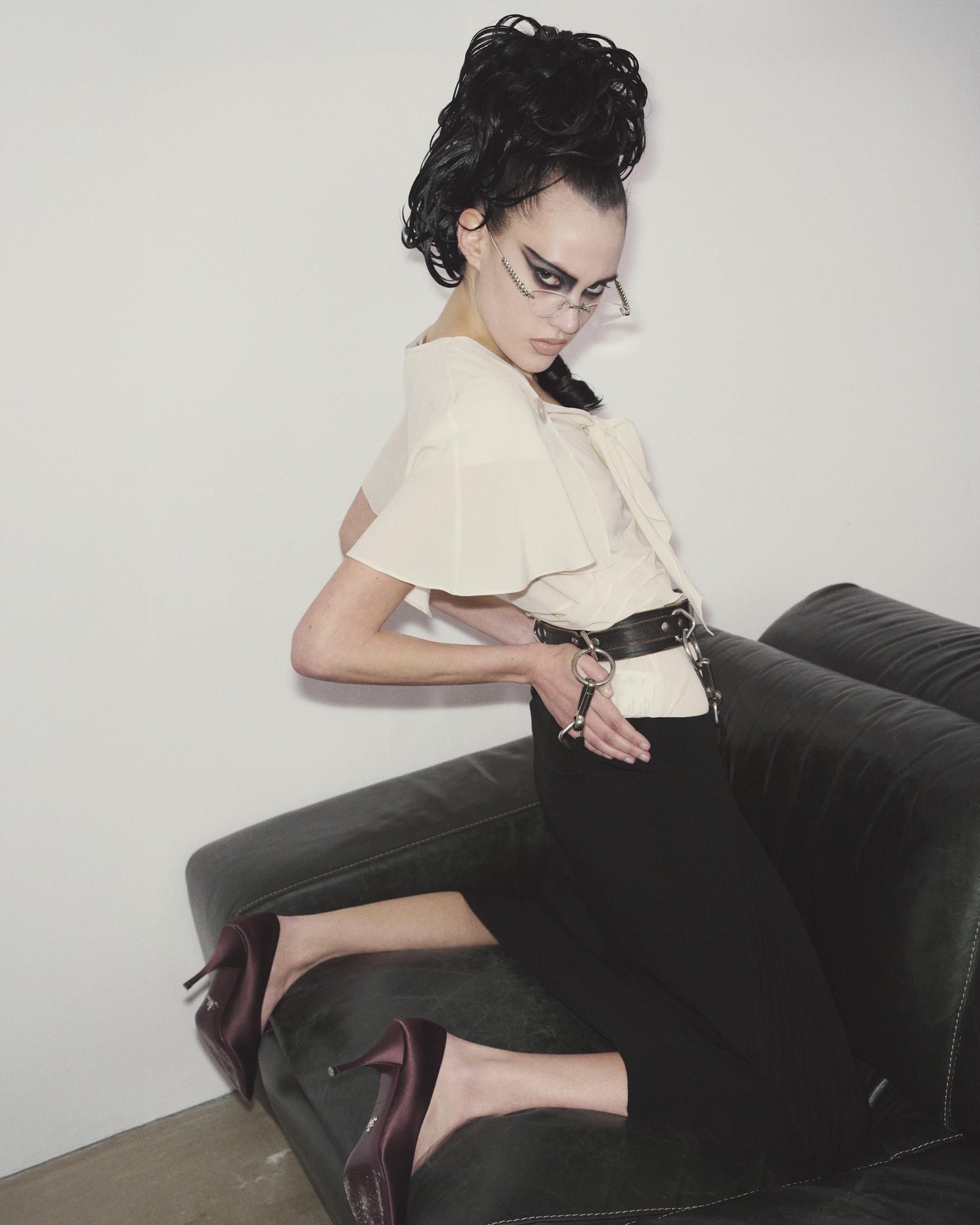 Jacket, skirt and turtleneck CELINE BY HEDI SLIMANE