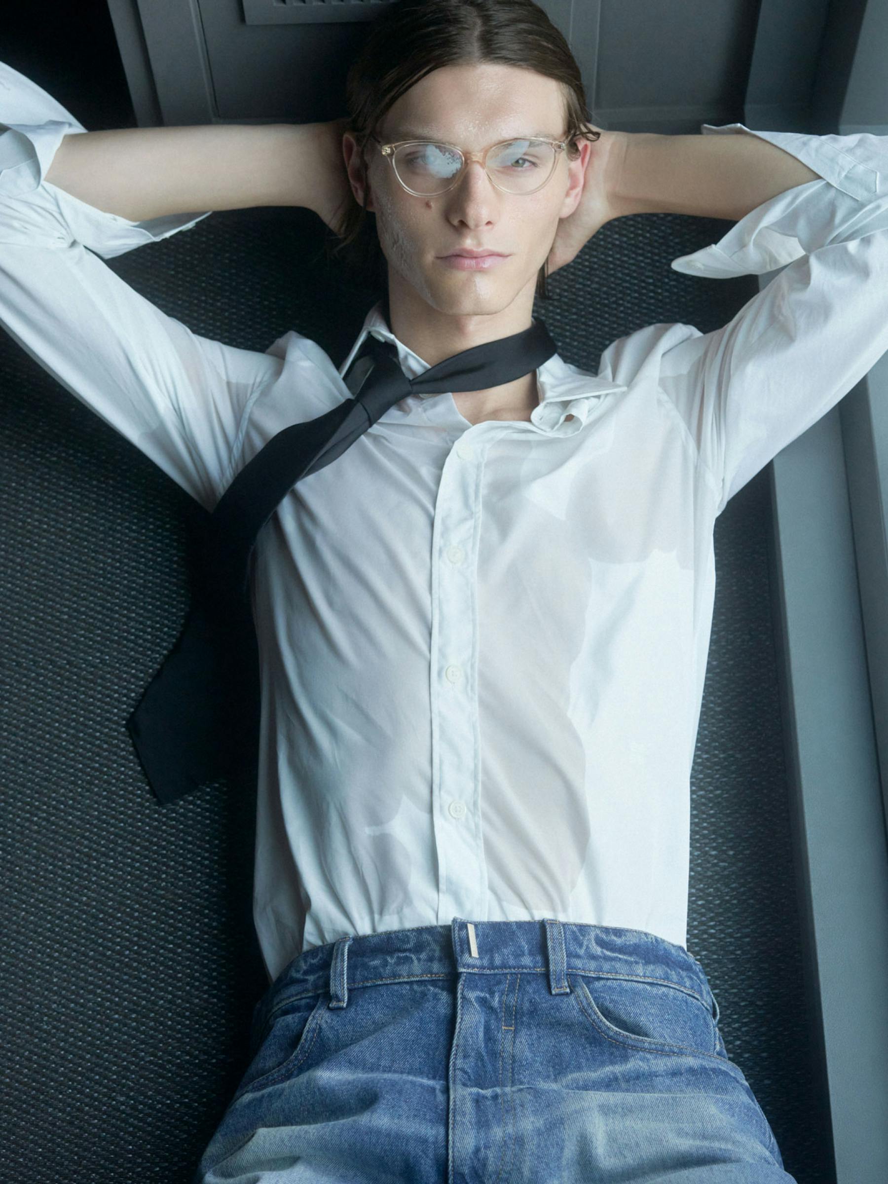 Nes is wearing top SAINT LAURENT BY ANTHONY VACCARELLO, bra MAISON CLOSE Serena is wearing shirt, skirt & belt SAINT LAURENT BY ANTHONY VACCARELLO, bra MAISON CLOSE