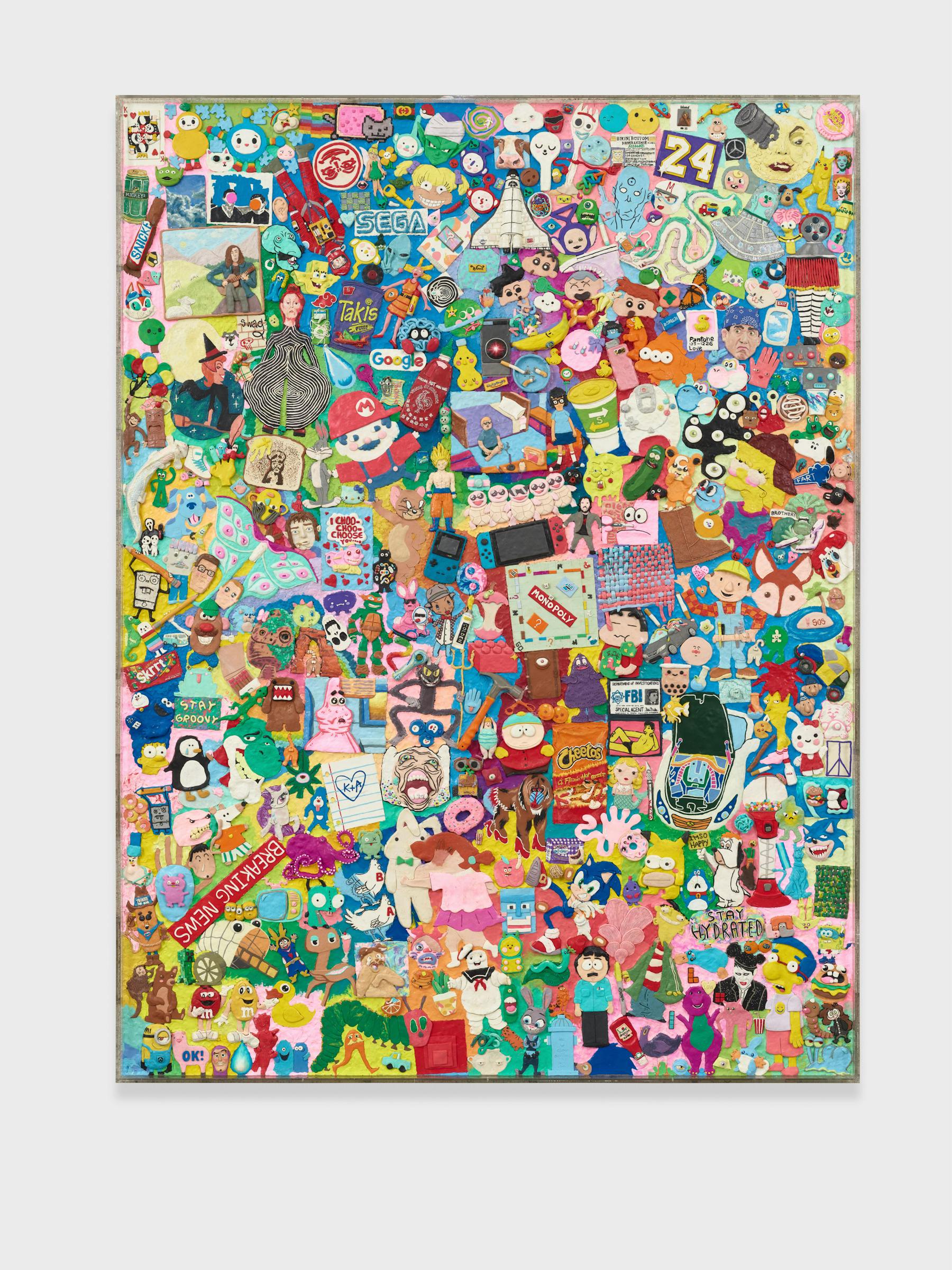 Plastiline clay in plexi frame, 96" H × 72" W x 3" D
