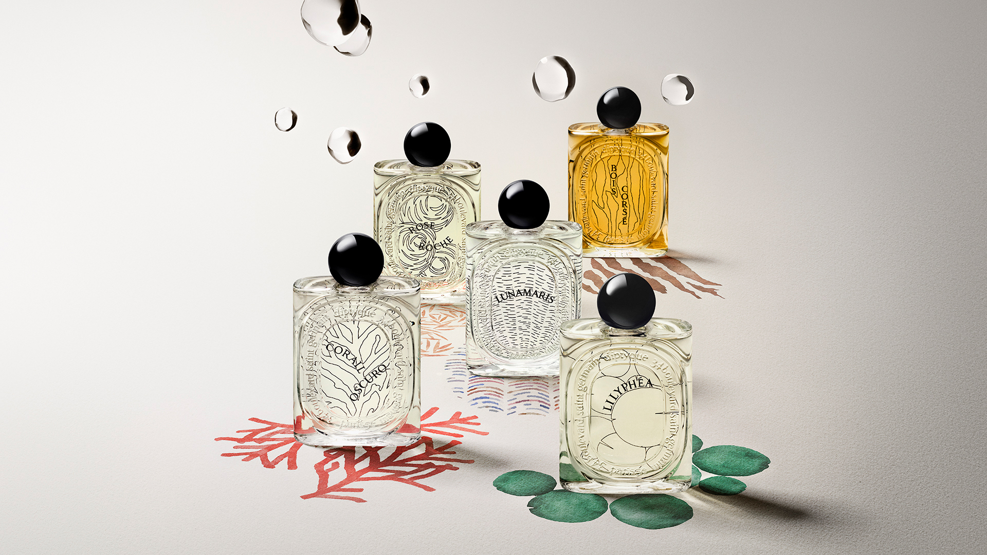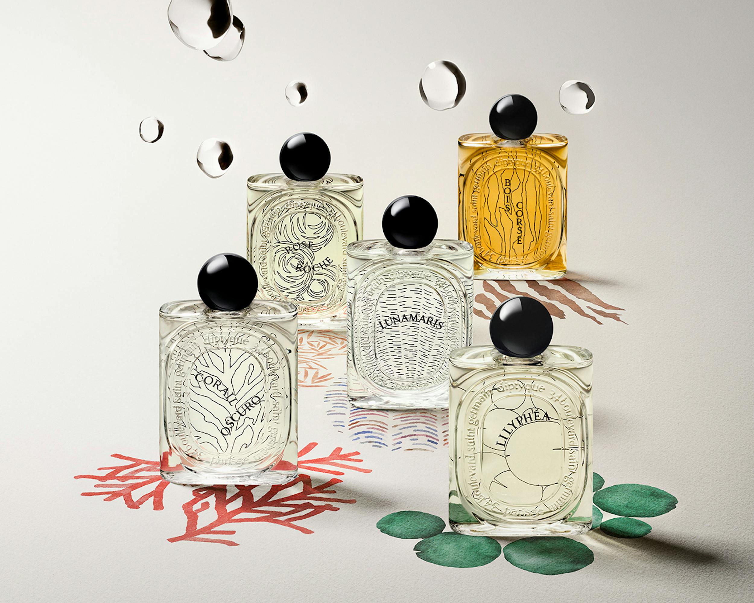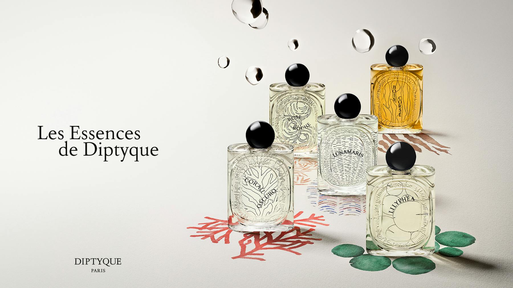 In the spirit of the exclusive candles "Les Mondes de Diptyque", the brand now unveils its new high-perfumery collection "Les Essences de Diptyque". The concept ? Endow five unscented treasures of nature, which fascinate and awaken the senses with their own scent: coral, mother-of-pearl, bark, water lily and sand rose.