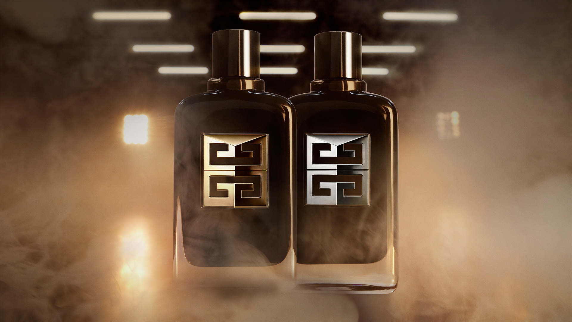 It is set within a gold palette — the signature of Gentleman Ambré — and plays with diptychs that draw visual parallels between the ambassador, the pack and the world of Formula 1.