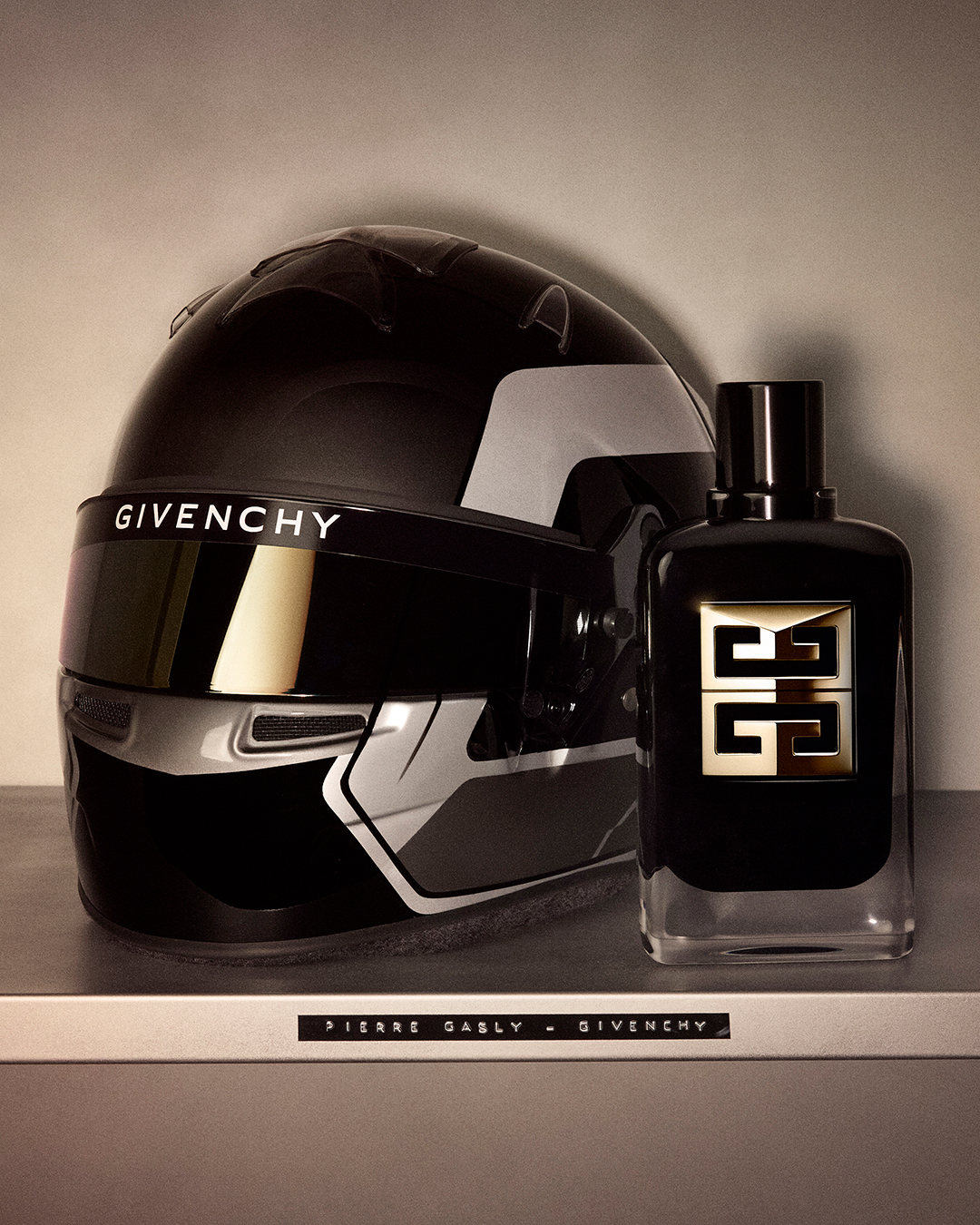 Exhibition signs for Givenchy Gentleman the arrival of its new ambassador, Pierre Gasly. The codes of elite sport help evolve the notion of the contemporary Gentleman: self-transcendence, discipline and inspiration.