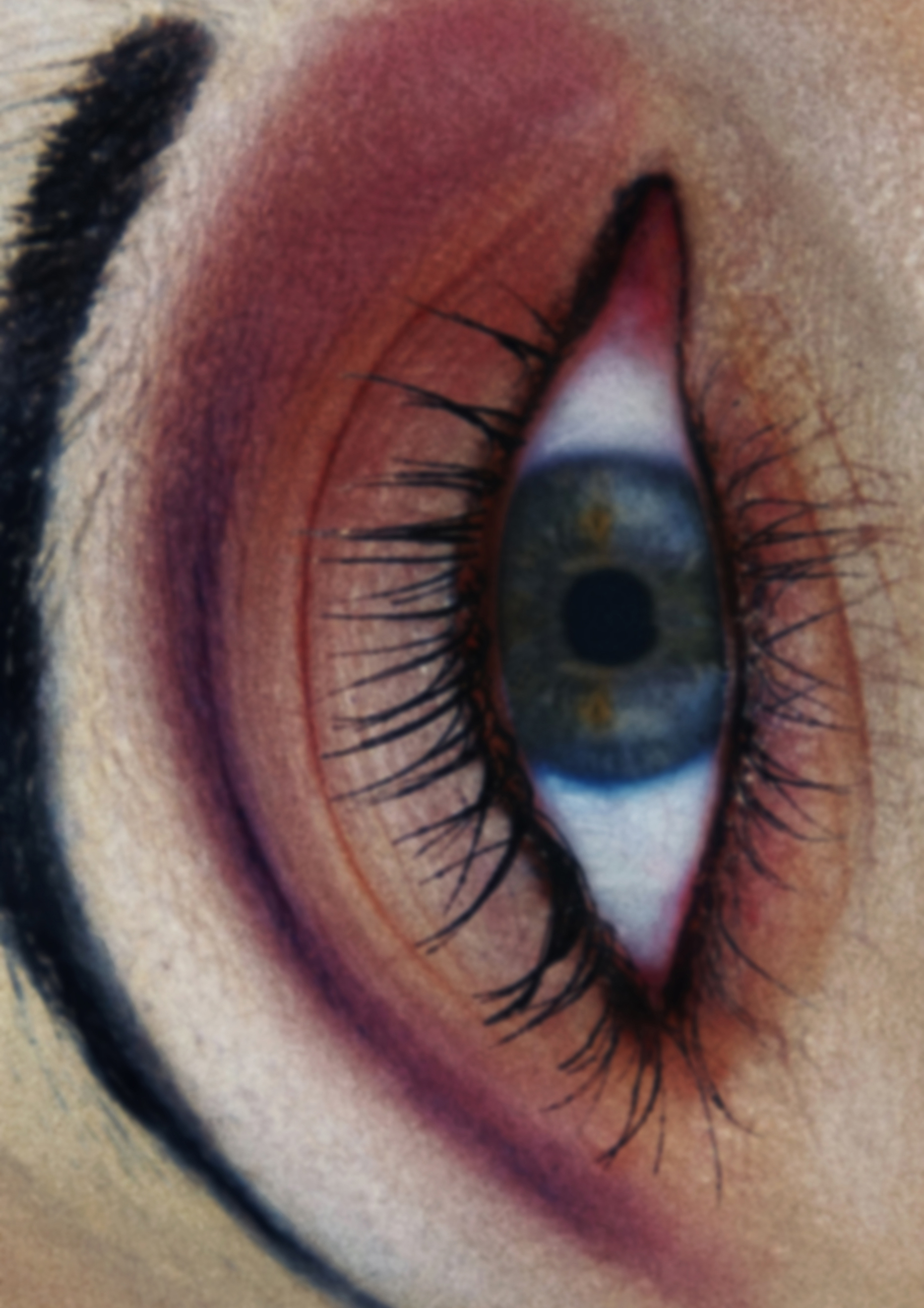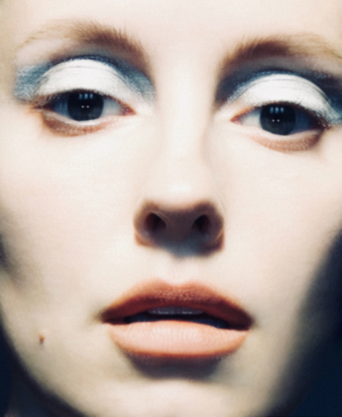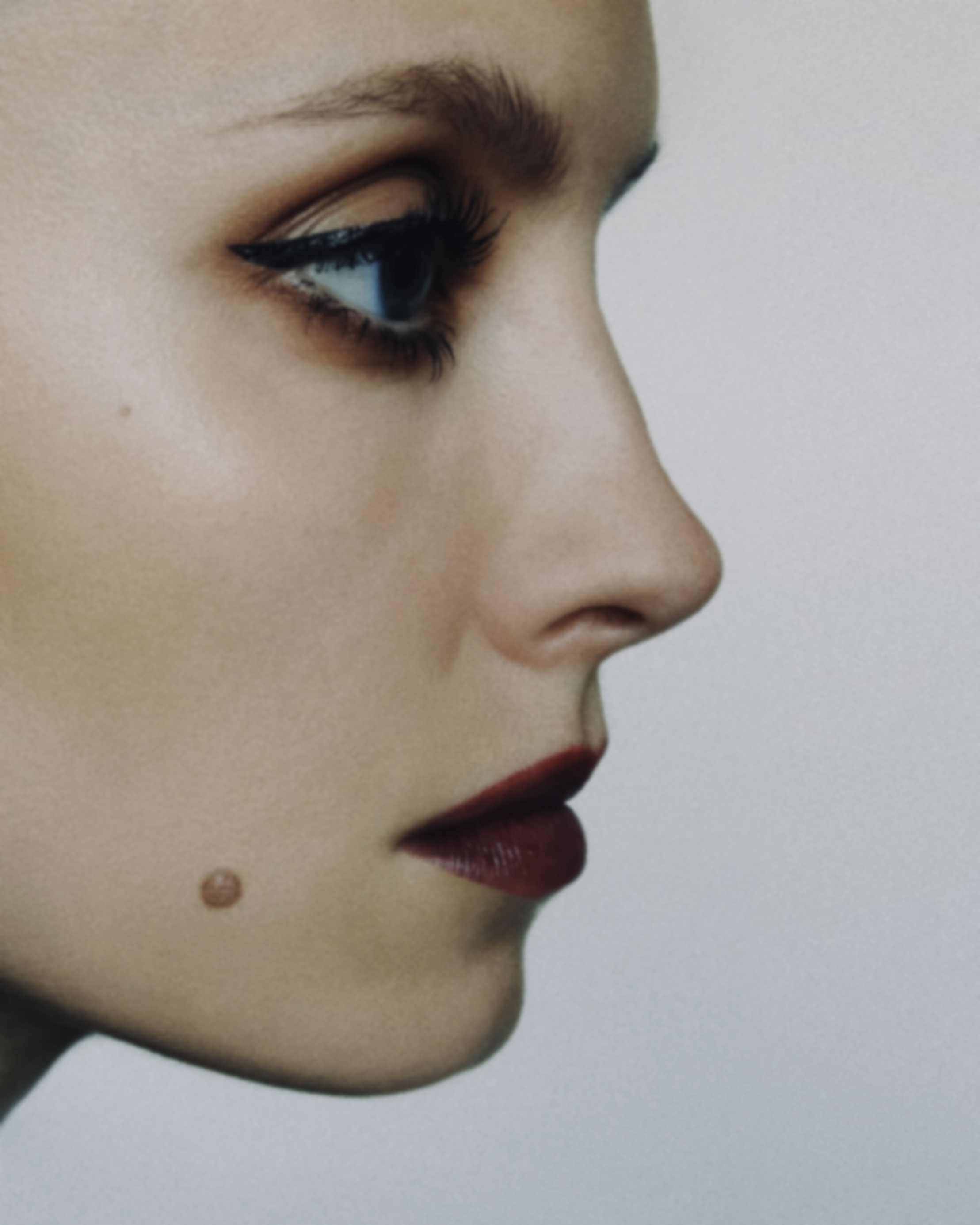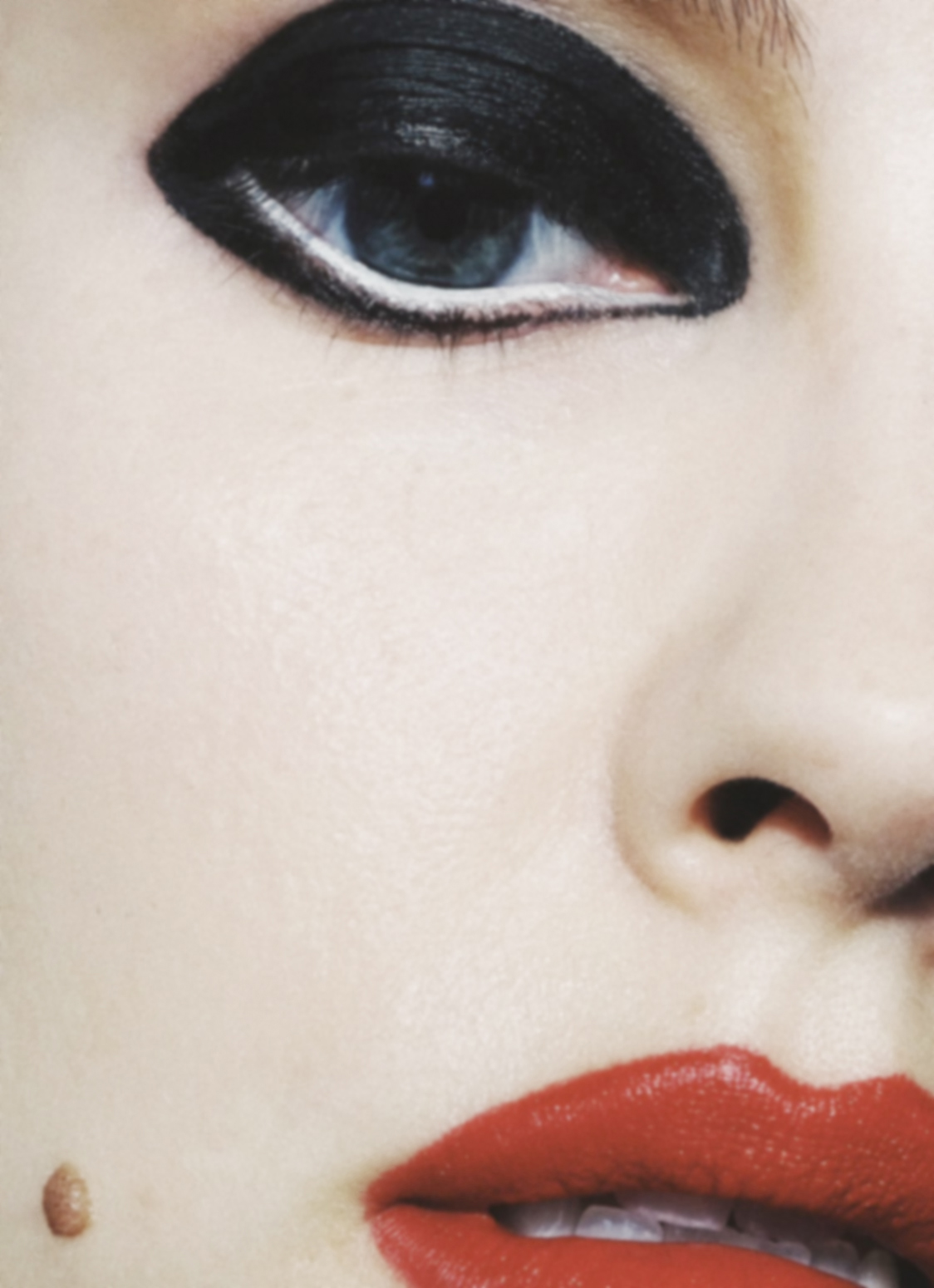 This photography association is an invitation from the artists to read through the make-up history from ancient days to nowadays. It appears, lips have only been on top of beauty standards for a short time. Beforehand, and so until the 60’s, eyes were the part of the face to accentuate, the center of beauty-rituals. Red and its derived shades, which we most of the time associate to lipstick, were colors used on the eyes in Egyptian, Greek and Roman civilisations, as the finishing touch completing an elegant look.
