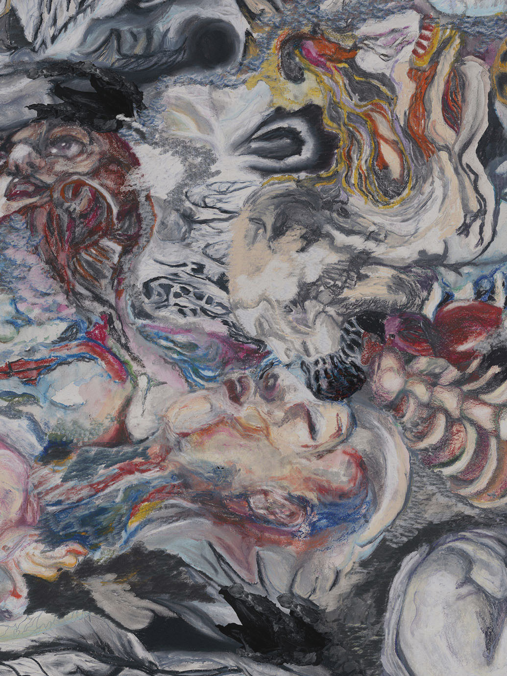 The process of organization is set up as layers, superimpositions of periods, cultures, knowledge... that we collect and organize to create a panoramic and yet precise feeling, where we combine words that contradict each other. Scales, infinitely large and infinitely small, are depicted side by side, and are tressed and intertwined, disturbing our notion of spatiality and temporality.
