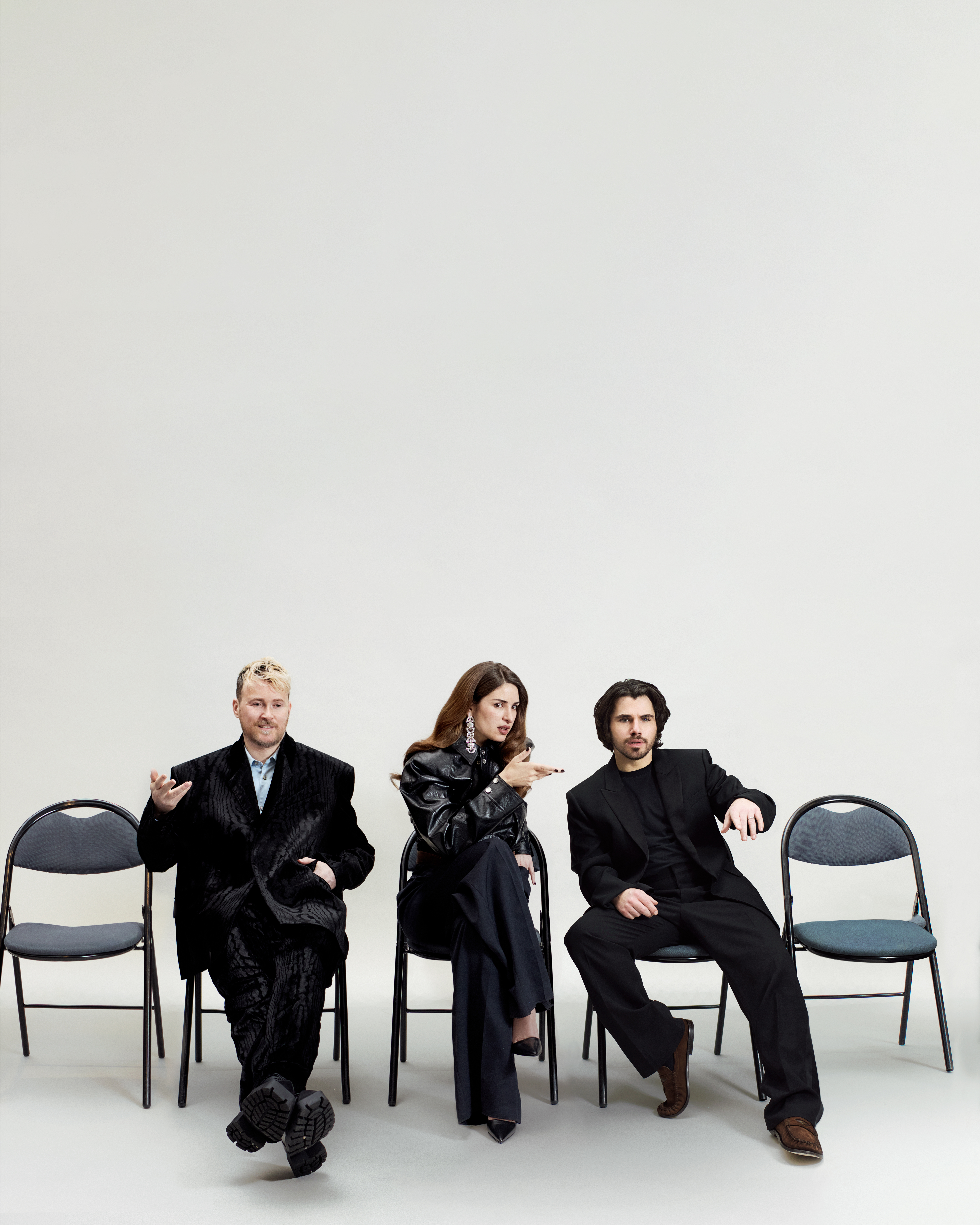 Jonathan wears MUGLER jacket and pants, MAISON MARGIELA shirt, BALENCIAGA shoes.