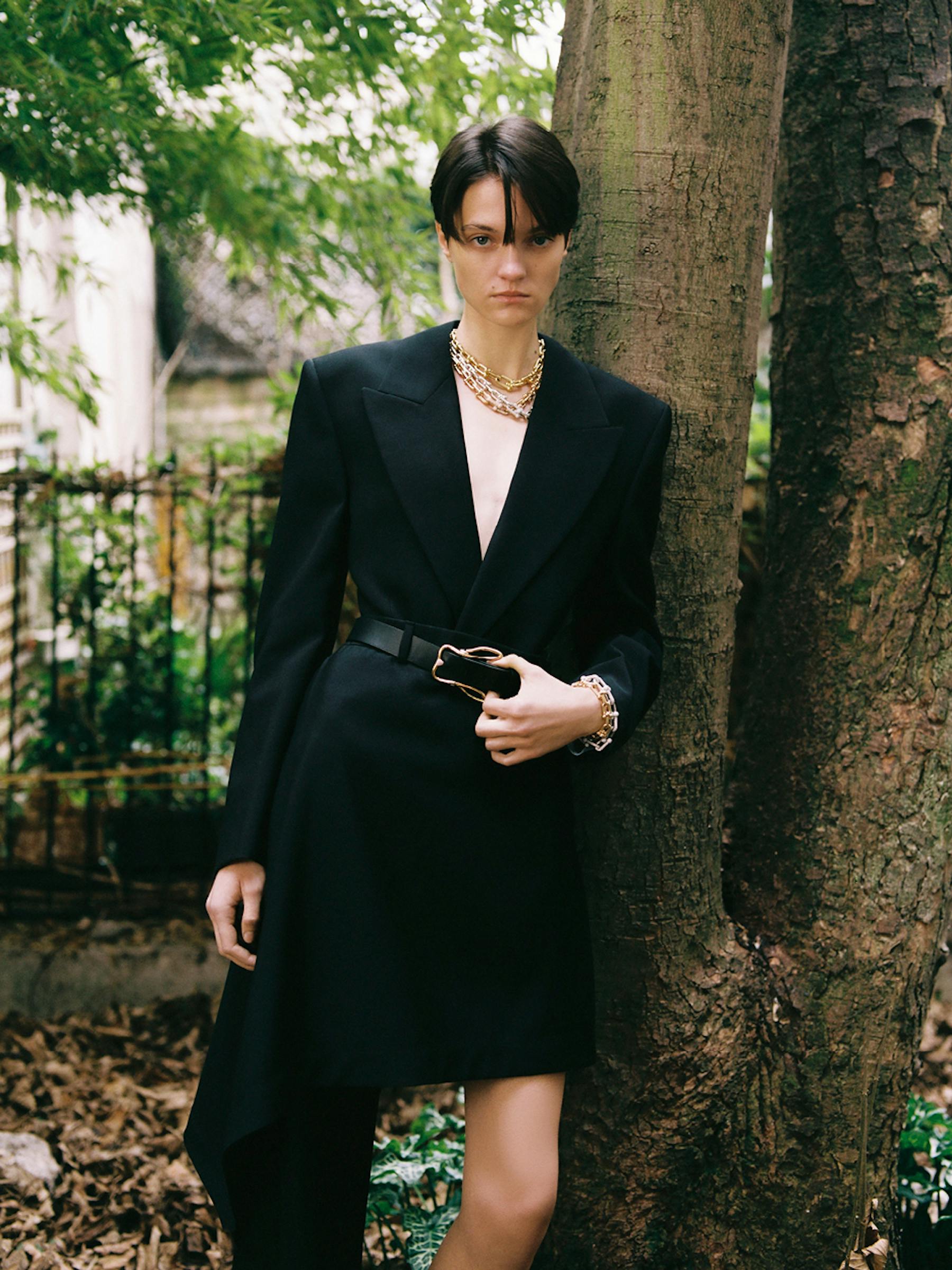Jacket, pants, earrings, necklace, bracelet LOUIS VUITTON