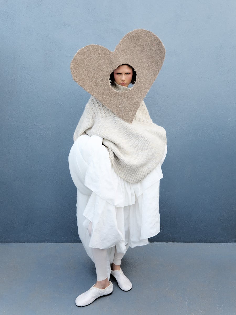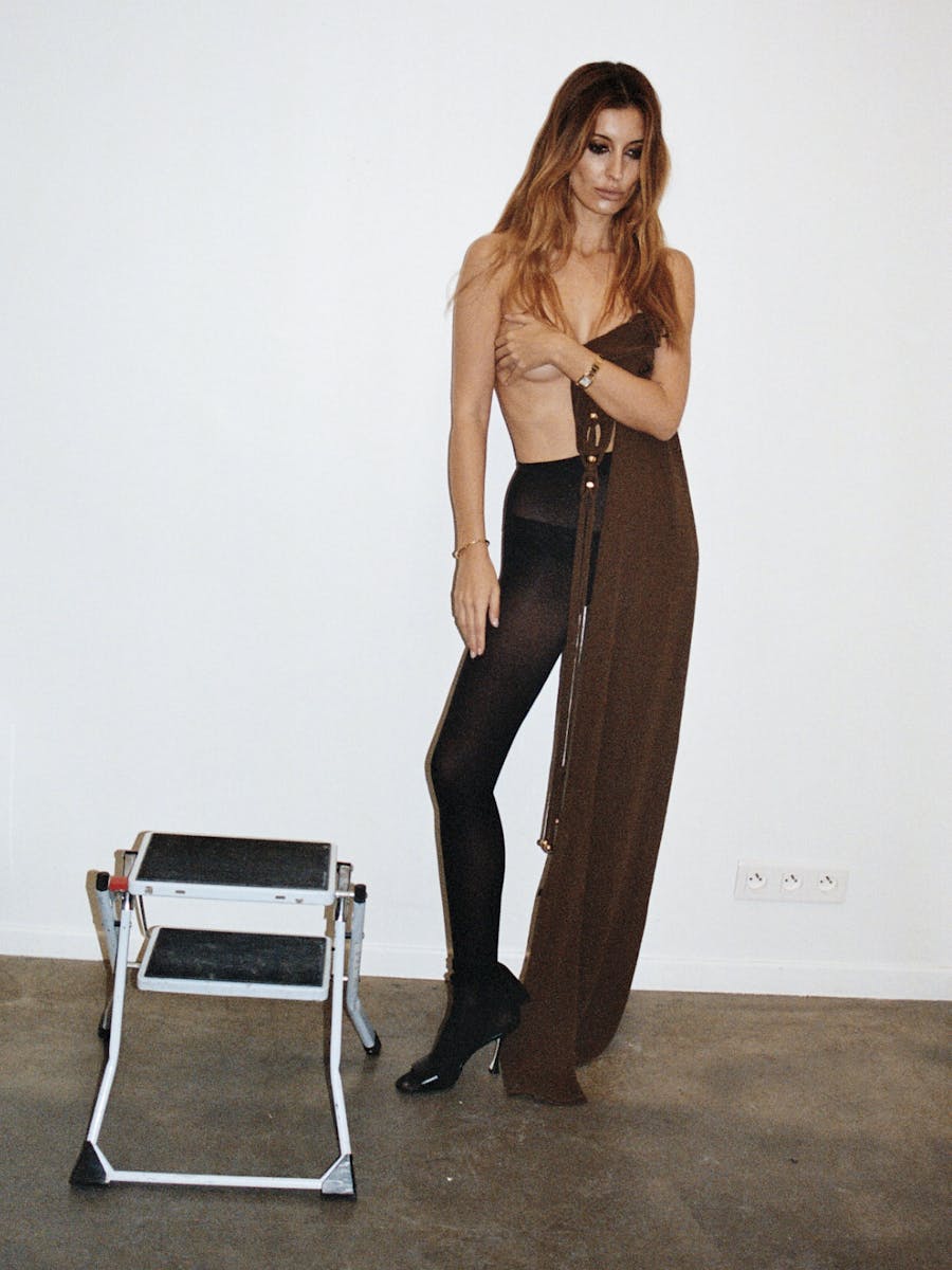 Greta is wearing dress and gloves MAISON MARGIELA