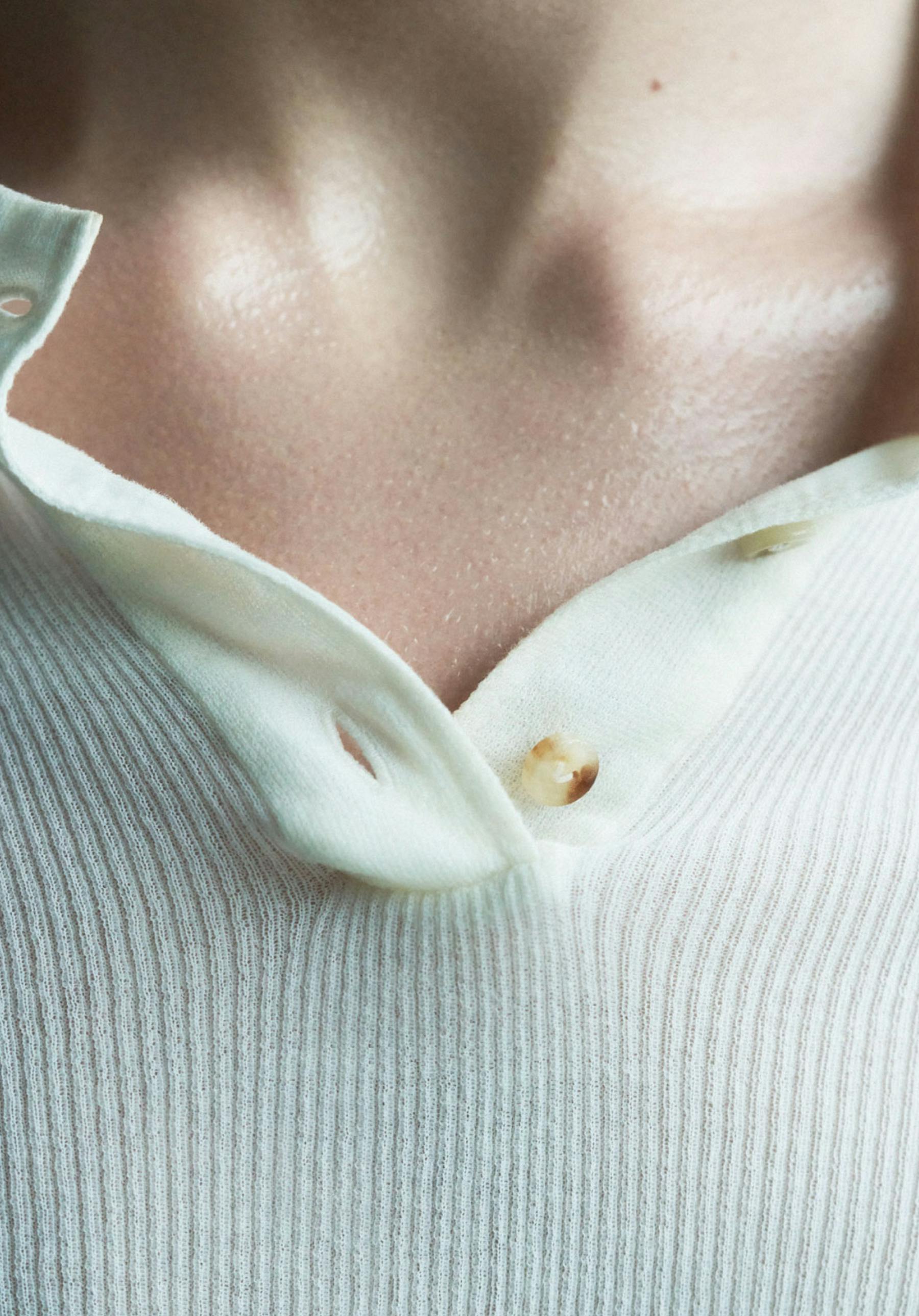 Teo is wearing a polo-shirt BOTTEGA VENETA